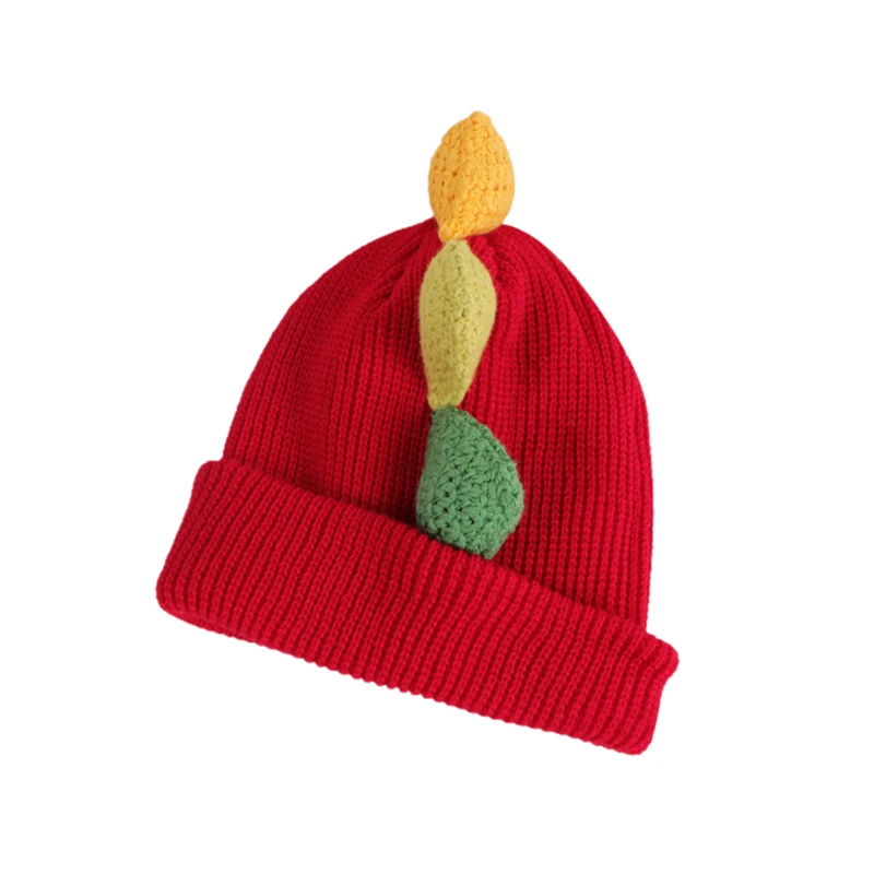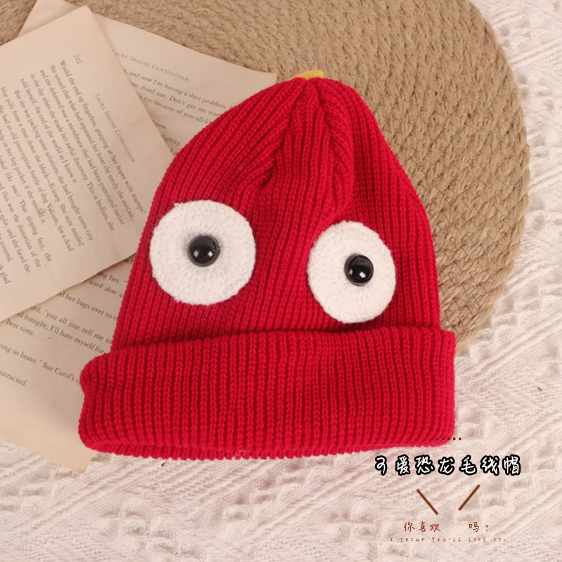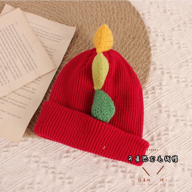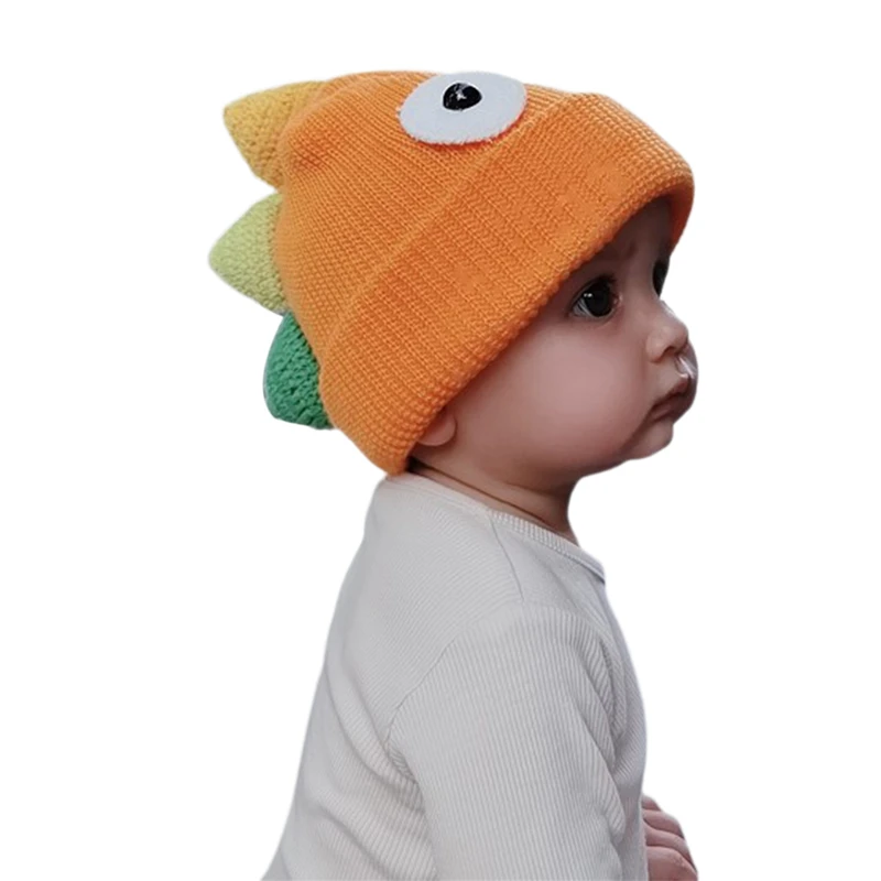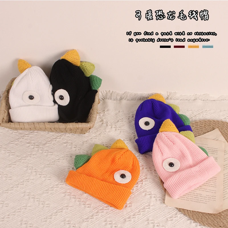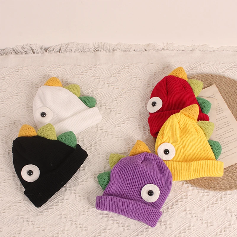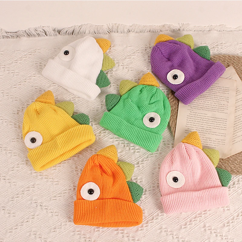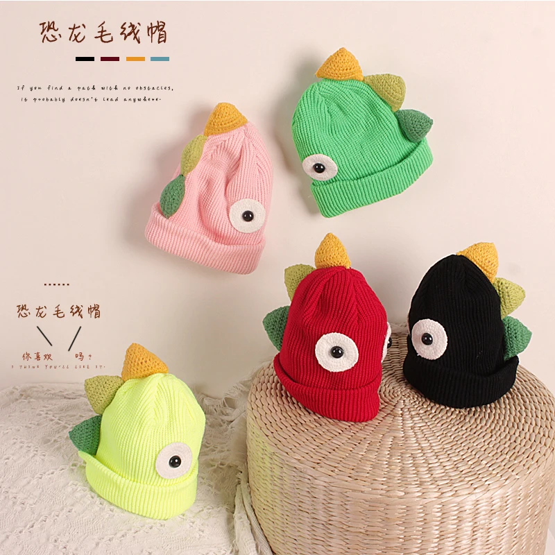 Детская шапка-бини с динозавром, милая мультяшная зимняя теплая вязаная шапка с животными для мальчиков и девочек