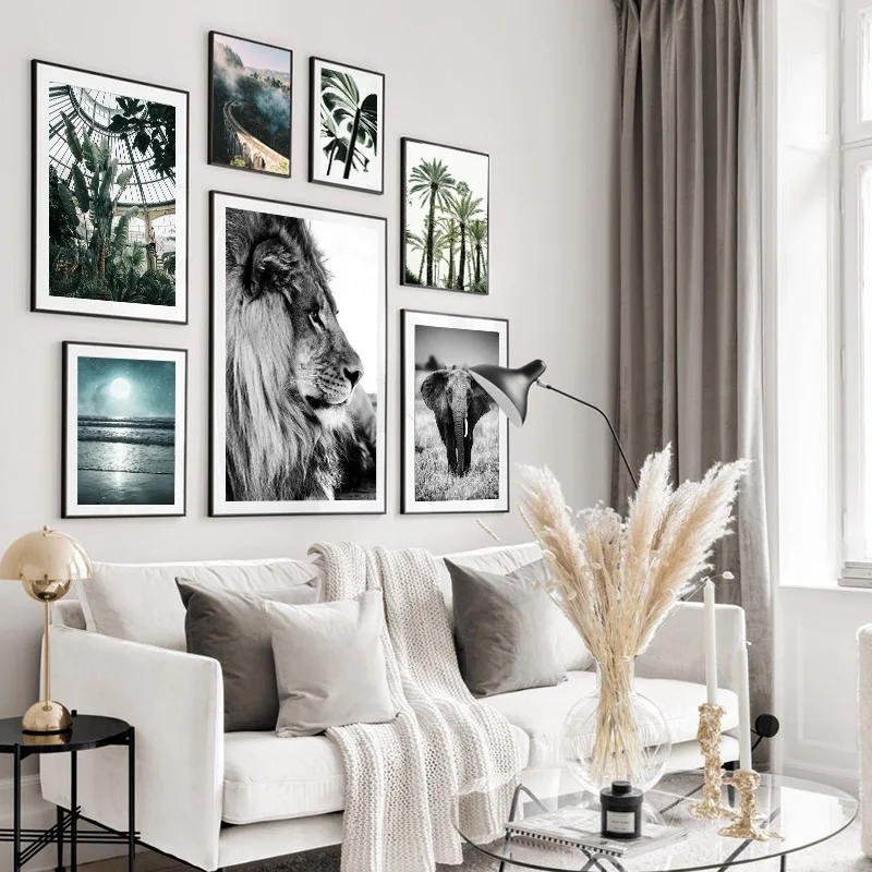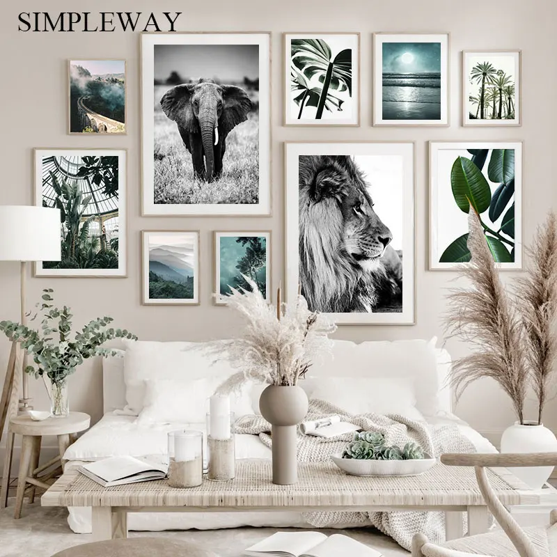 Настенный постер с изображением Льва, растений, Листьев, животных, в скандинавском стиле, в виде дерева, звездная ночь, декоративная картина, украшение для дома