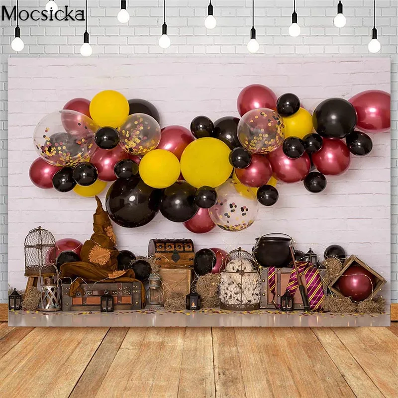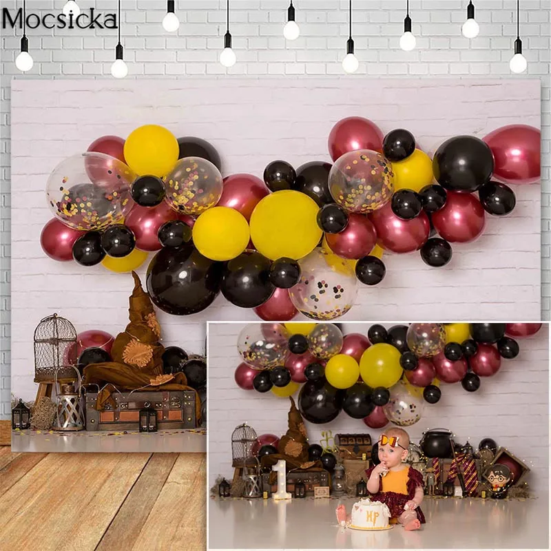 Mocsicka Гарри волшебник торт разбивать фотографии фоны воздушный шар чемодан Декор 1-й День рождения фотосессия фон фотостудия