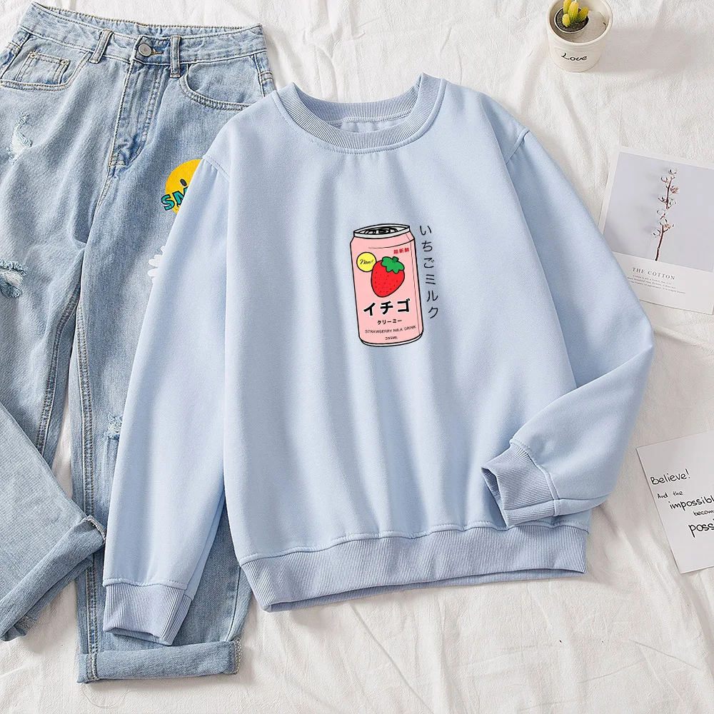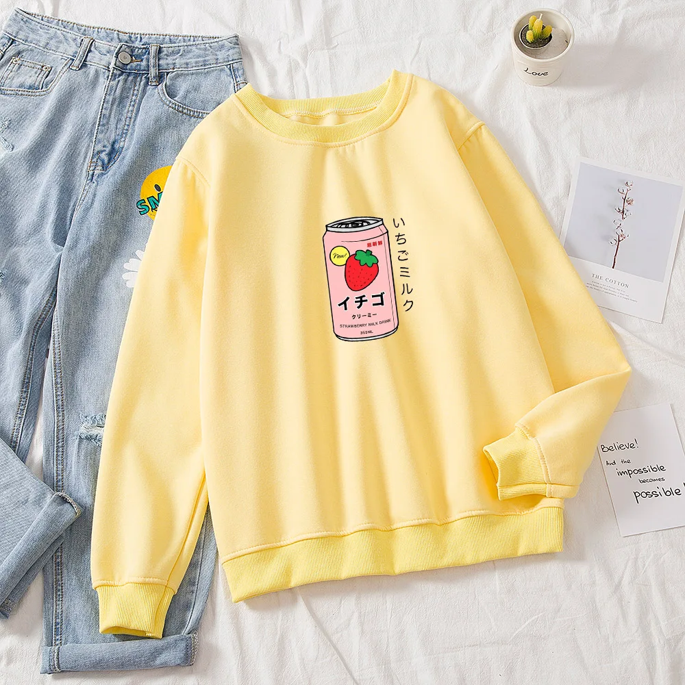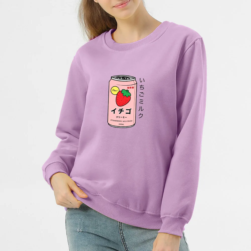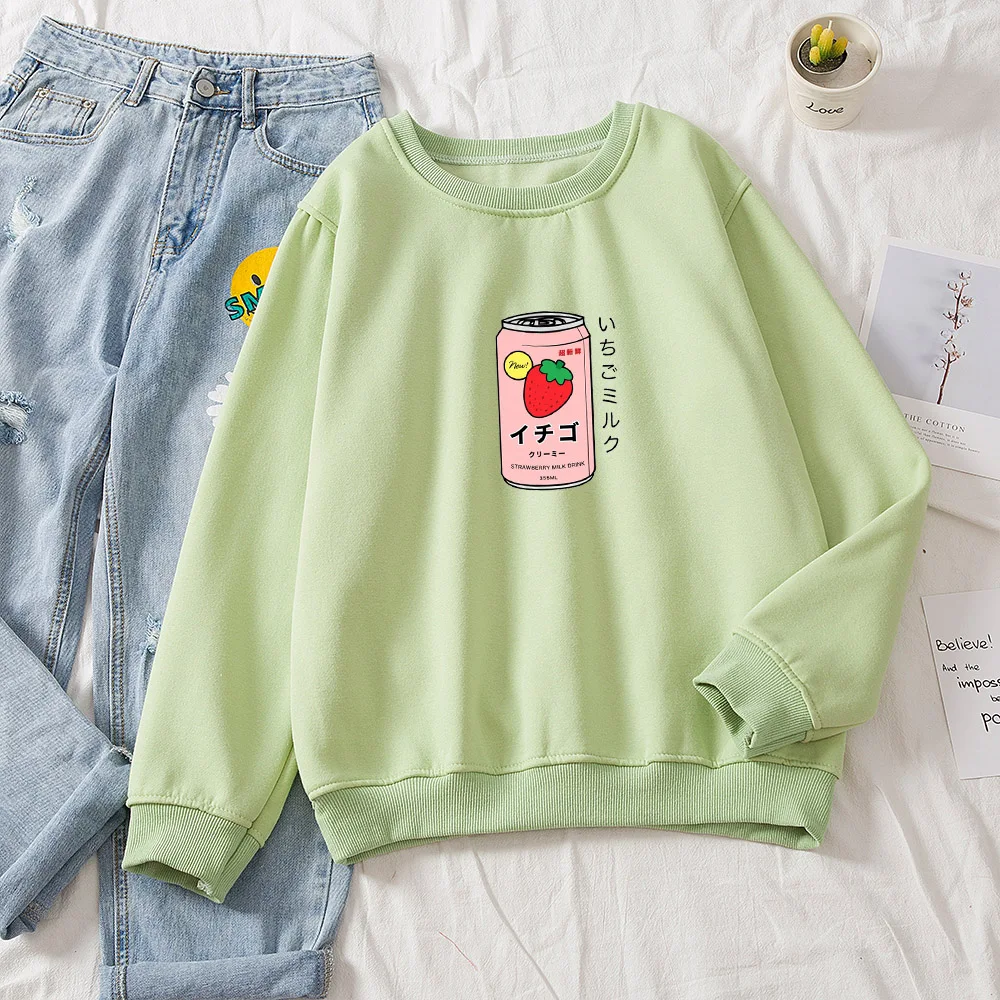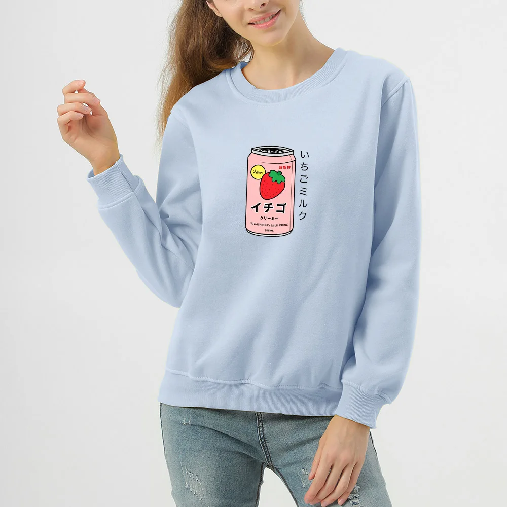 Толстовка Женская хлопковая с клубничным принтом и круглым вырезом