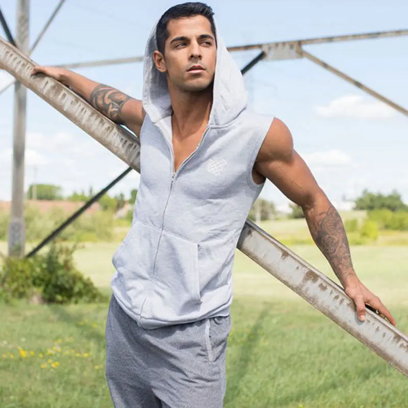 Мужские повседневные толстовки с капюшоном, майки, летние облегающие топы без рукавов, на молнии, с карманами, мужской летний спортивный жилет
