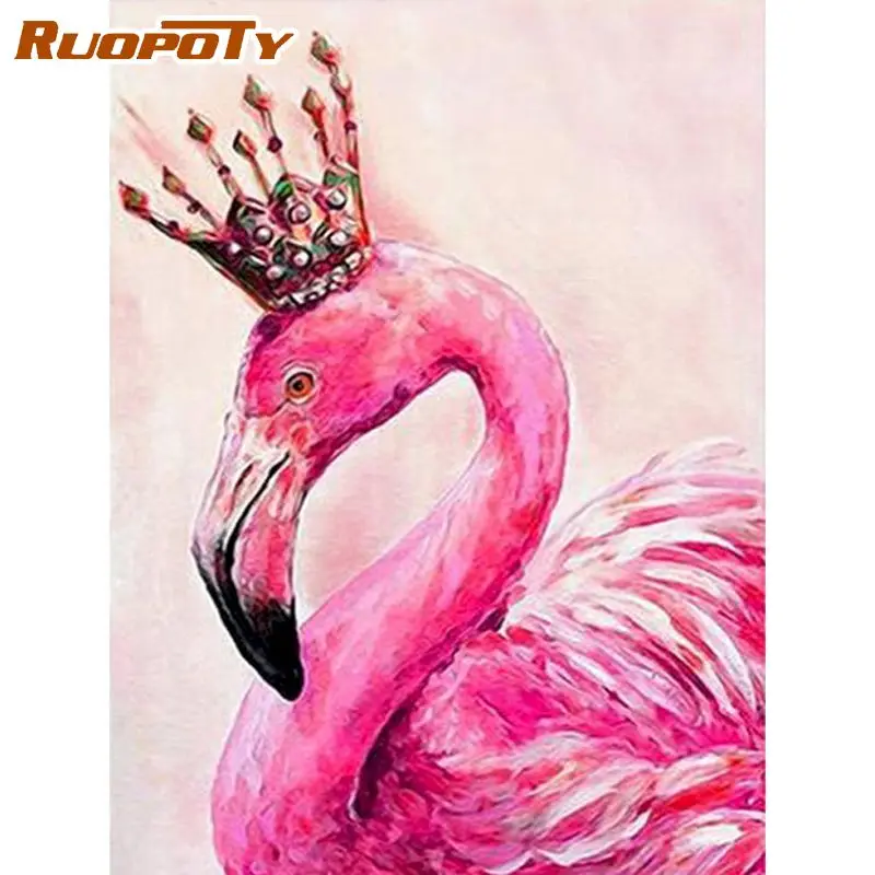 RUOPOTY рамка, Розовый фламинго, животные, живопись по номерам для взрослых, DIY подарок, свадебный Декор, акриловый холст