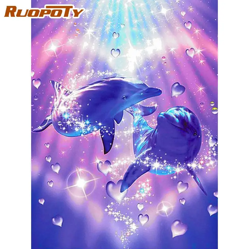 RUOPOTY 60x75 см рамка Дельфин DIY живопись по номерам животное руч...