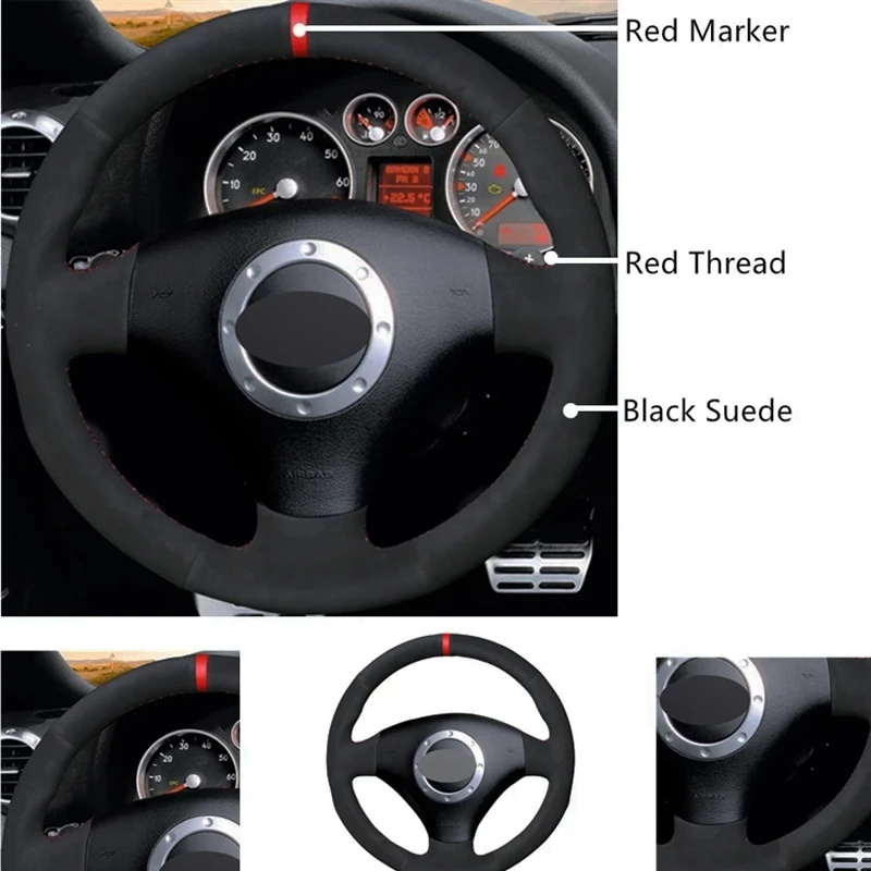 Сшитый вручную черный замшевый красный маркер Чехлы рулевого колеса...