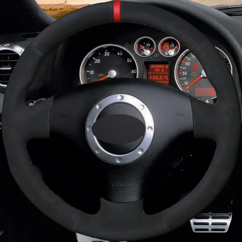 Сшитая вручную черная замша для Audi A2 8Z A3 8L Sportback A4 B6 Avant A6 C5 A8 D2 TT 8N S3 S4 RS 4 RS 6, чехол рулевого колеса автомобиля