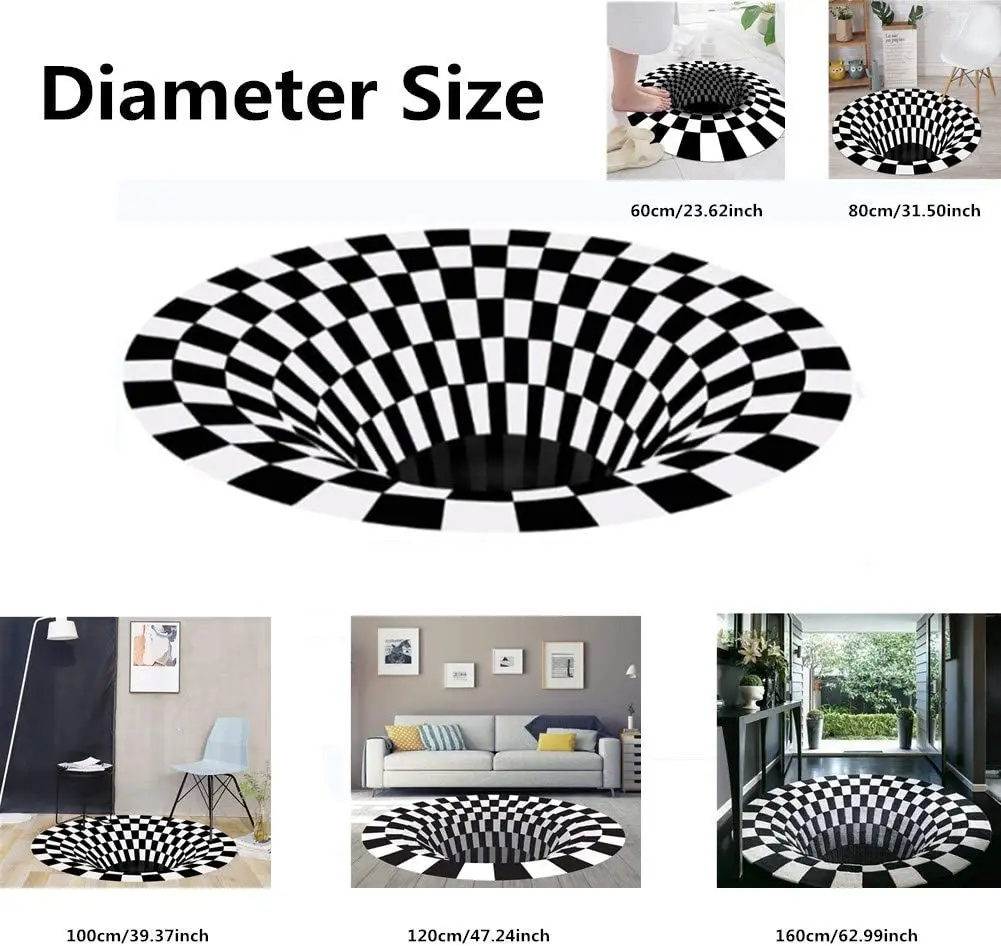 [Уникальный дизайн]: этот коврик создает иллюзию, а черно-белый клетчатый дизайн создает ощущение, что вы находитесь в черной дырке. Это привлекательное украшение для вашего дома. Ваши друзья и гости запомнят это.