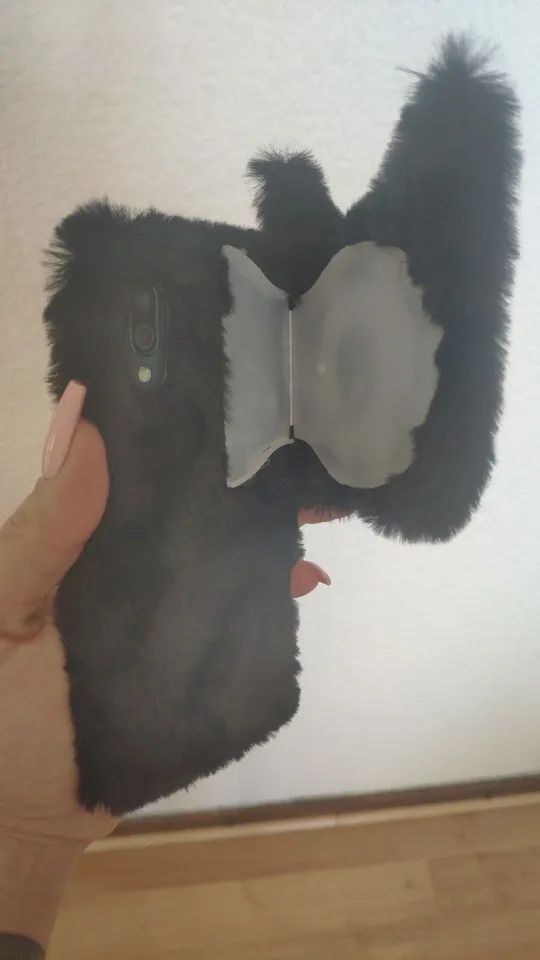 Милый пушистый плюшевый мягкий чехол с кошачьими ушками для телефон...