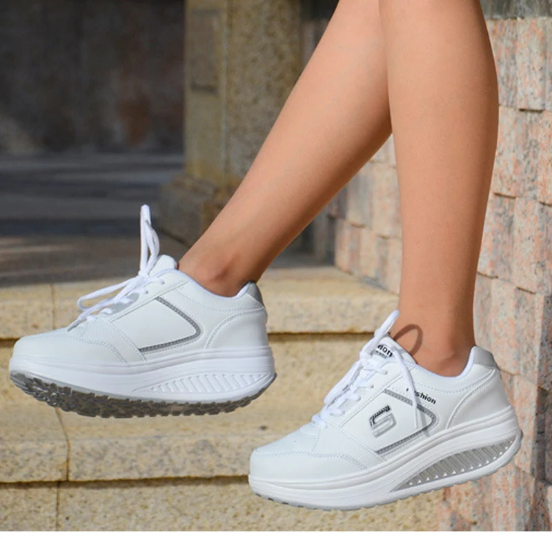 Женские кроссовки на танкетке, белые кроссовки для бега