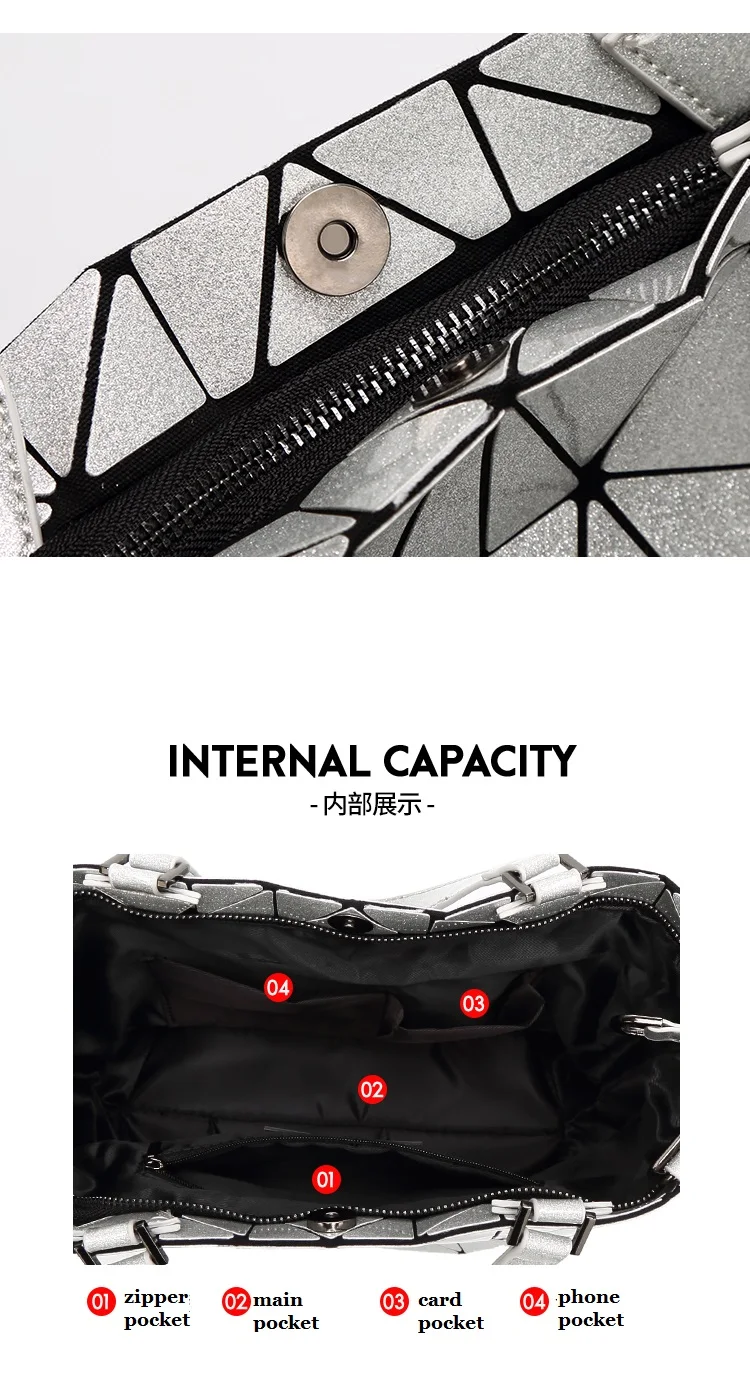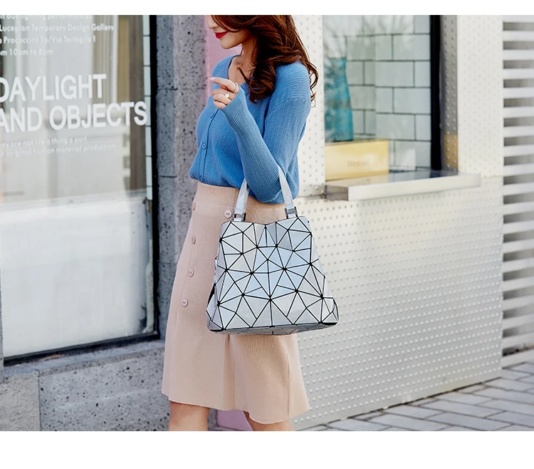 Maelove световой сумка Для женщин с геометрическим рисунком, с бриллиантами, сумка тоут, сворачиваемая сумка Роскошные голограмма сумки из лазерной кожи дизайнерская сумка через плечо