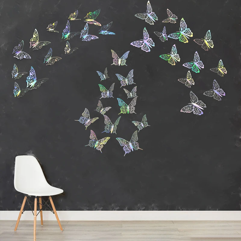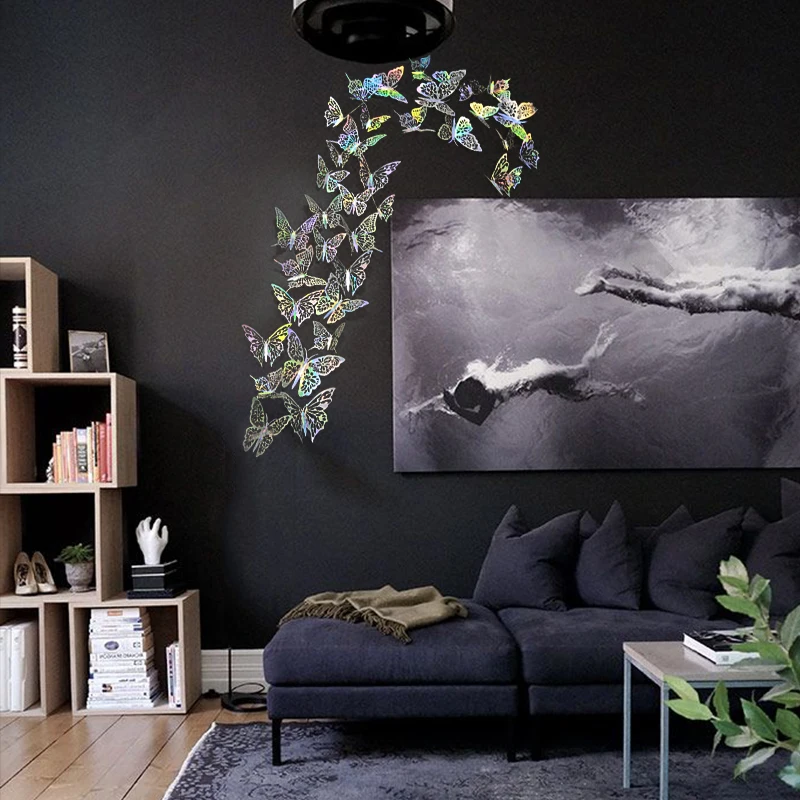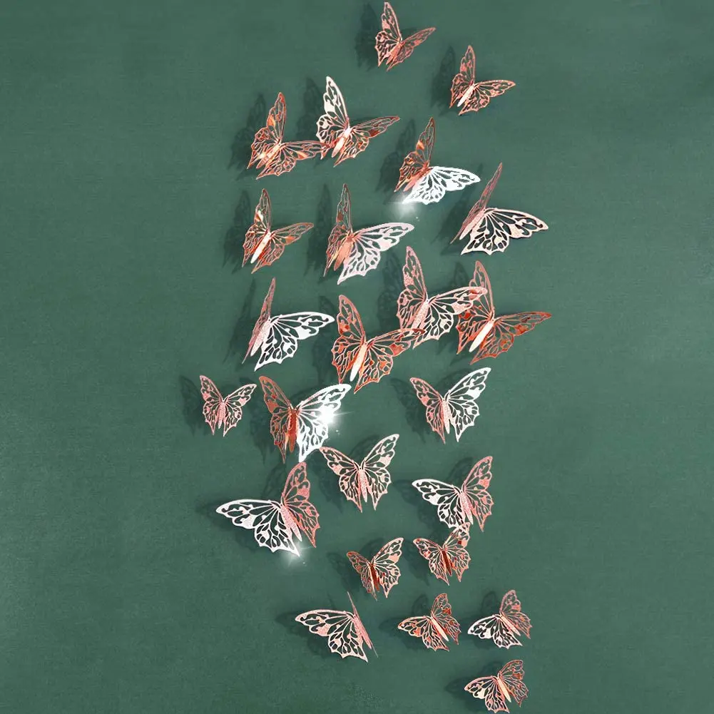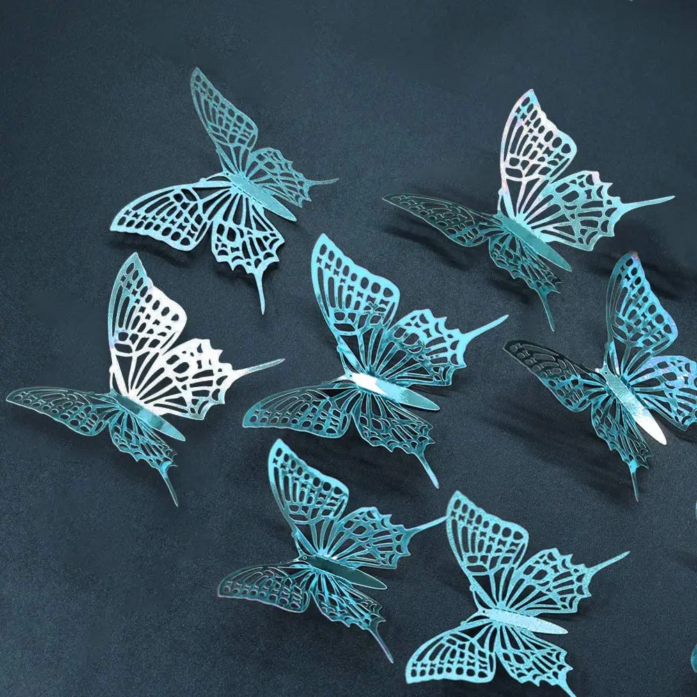 12 шт.компл. из пустотелых 3D наклеек на стену в виде бабочки, укра...