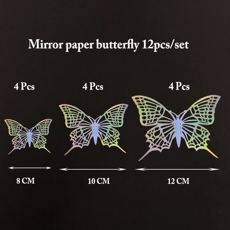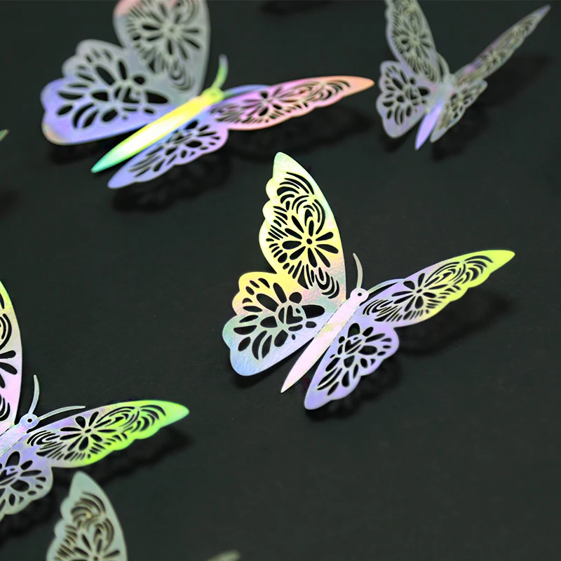 : Эти зеркальные металлические бумажные бабочки уникального дизайна с ласточкиным хвостом выдолблены 3D полупрозрачными художественными элементами, которые являются красивыми и привлекательными дополнениями, чтобы привнести аромат яркой природы