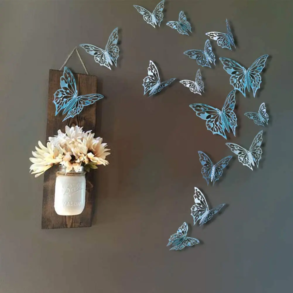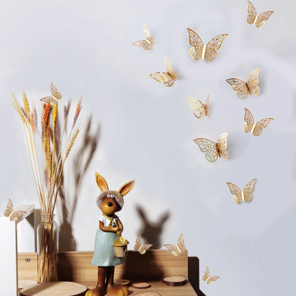 12 шт.компл. полые 3D наклейки на стену в виде бабочки для свадебно...