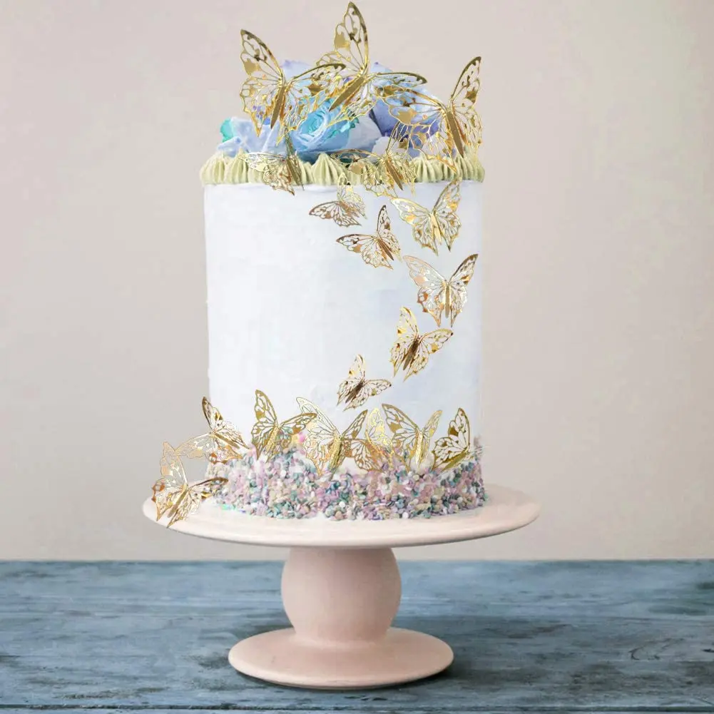 3D цвета шампань, золото, ласточкин хвост, металлическая пустая бабочка, наклейка на стену, съемный стикер, гостиная, школьный стол, украшения для торта
