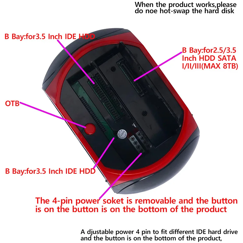 Совместимость с 2,5 "/3,5" IDE/SATA I/II/III жёсткий диск, максимальная поддержка 8 ТБ интерфейс SATA жесткий диск, интерфейсы IDE поддерживают жесткий диск на 1 ТБ (не совместимы с жесткими дисками Western Digital IDE). Легко передавайте данные с 2,5/3,5 IDE или SATA жесткого диска на компьютер через USB 2,0 и eSATA port, подключайте и работайте. (Примечание: Пожалуйста, не заменяйте жесткий диск при работе устройства.)