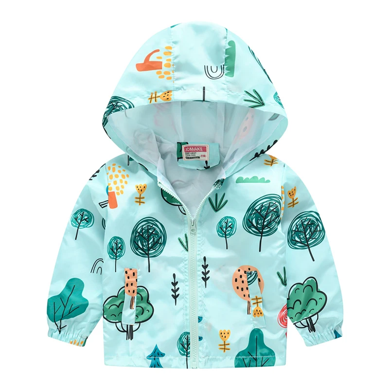 Куртка детская непромокаемая на молнии, с капюшоном и мультяшным принтом