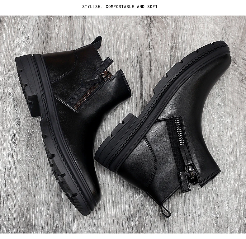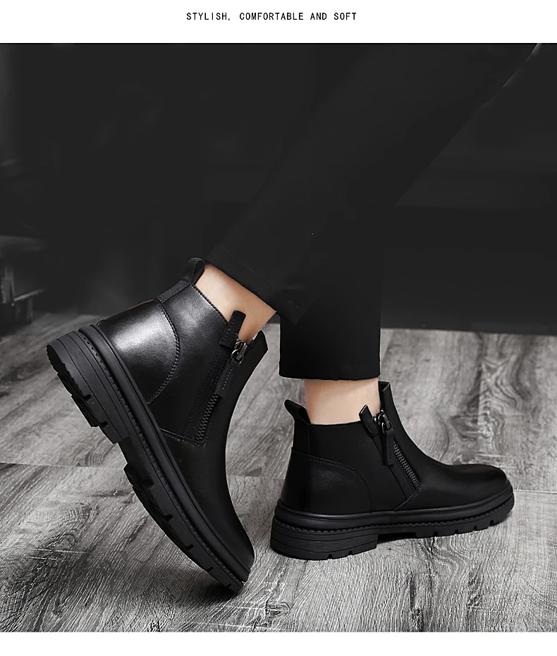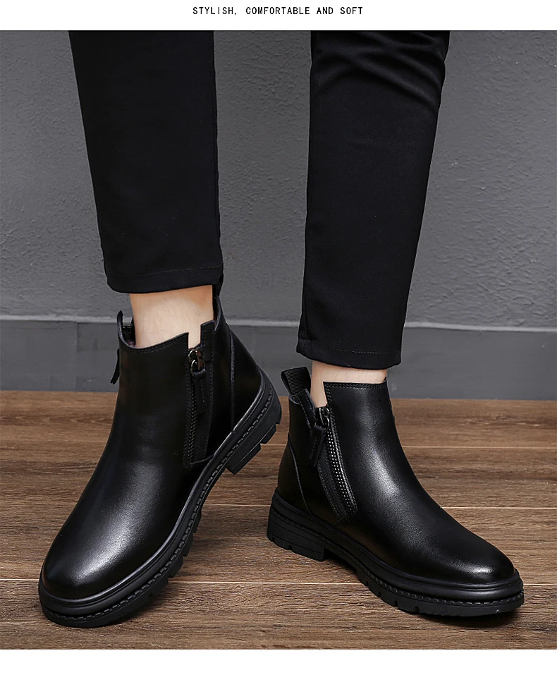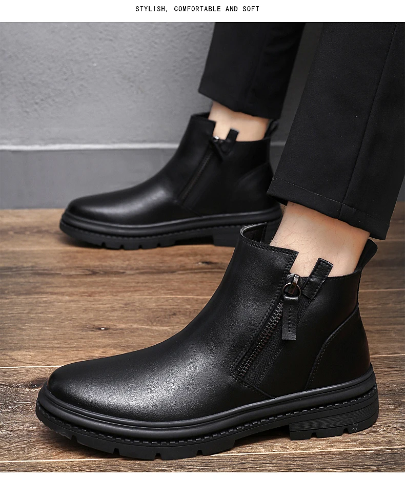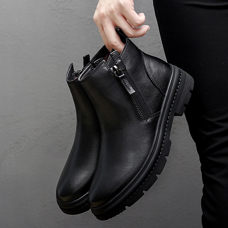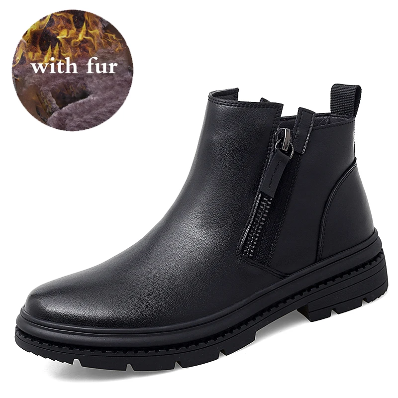 Ботинки Челси мужские зимние, из натуральной кожи, на меху, на молнии