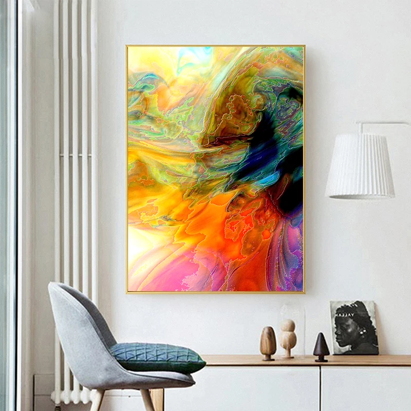 Красочные абстрактные картины, холст, живопись, плакаты и принты, настенное искусство для гостиной, украшение, квадратная рамка