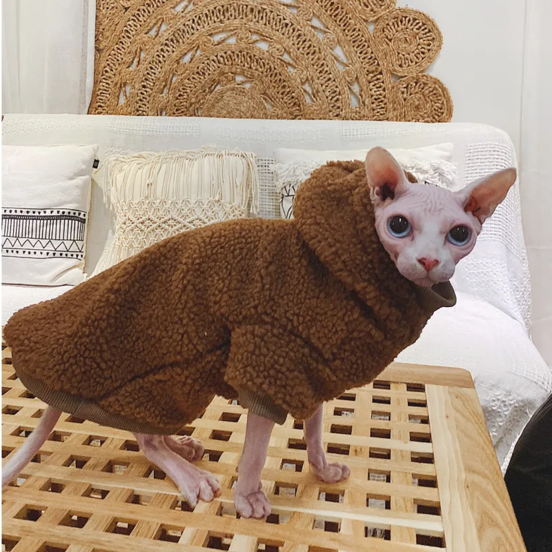 Теплая зимняя толстовка с капюшоном без шерсти для кошек, сфинкса, Девона, кониса