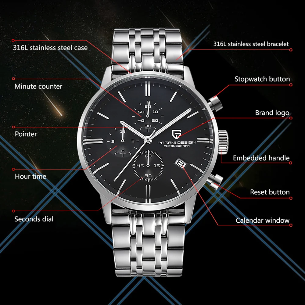 Часы PAGANI DESIGN Мужские наручные водонепроницаемые, брендовые Роскошные спортивные с хронографом и датой, с t-образным ремешком, 2020