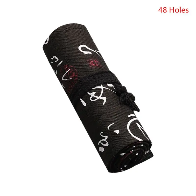 1224364872 отверстия холст школьный пенал Чехол Roll Up Карандаш Че...