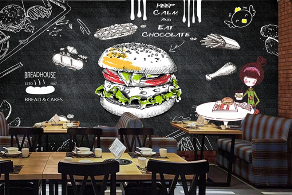 Снэк-бар настенная бумага ручная роспись Халк доска для гурманов десерт фаст-фуд кофе магазин ресторан фон 3d обои