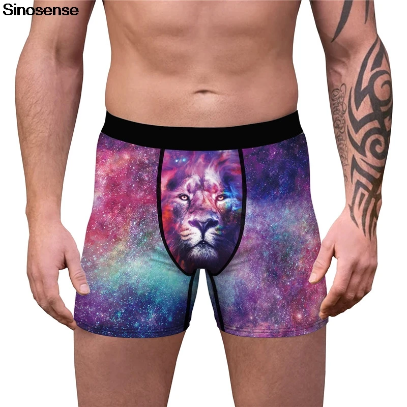 Мужское нижнее белье с космическим изображением галактики и Льва, Забавные 3D боксеры, новинка, боксеры, мужские трусы, трусы, сексуальное нижнее белье, боксеры для мужчин