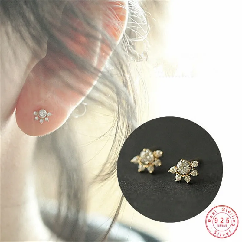 925 стерлингового серебра покрытие из 14-каратного золота с паве кристалл серьги-гвоздики в форме солнца из женские темперамент для девочек милое студенческое украшения для подруги подарок