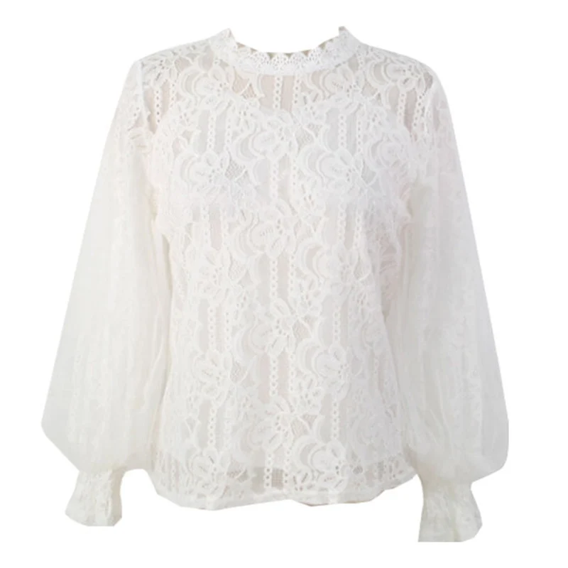 Женская весенне-осенняя стильная блузка рубашка Женская водолазка с вырезами и рукавами-фонариками кружевные корейские свободные топы SP890