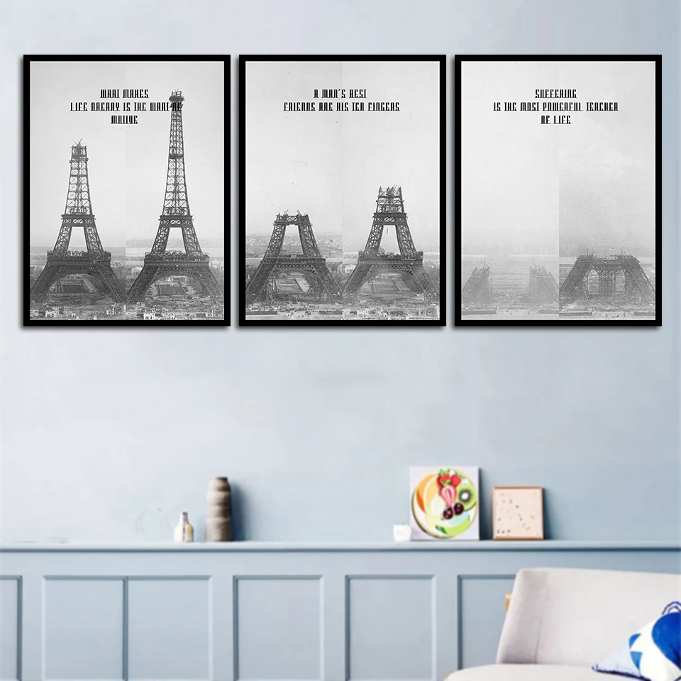 Набор из 3 предметов, винтажная башня в Париже, холст, живопись, Современное украшение для дома, гостиная, спальня, Настенный декор, картина