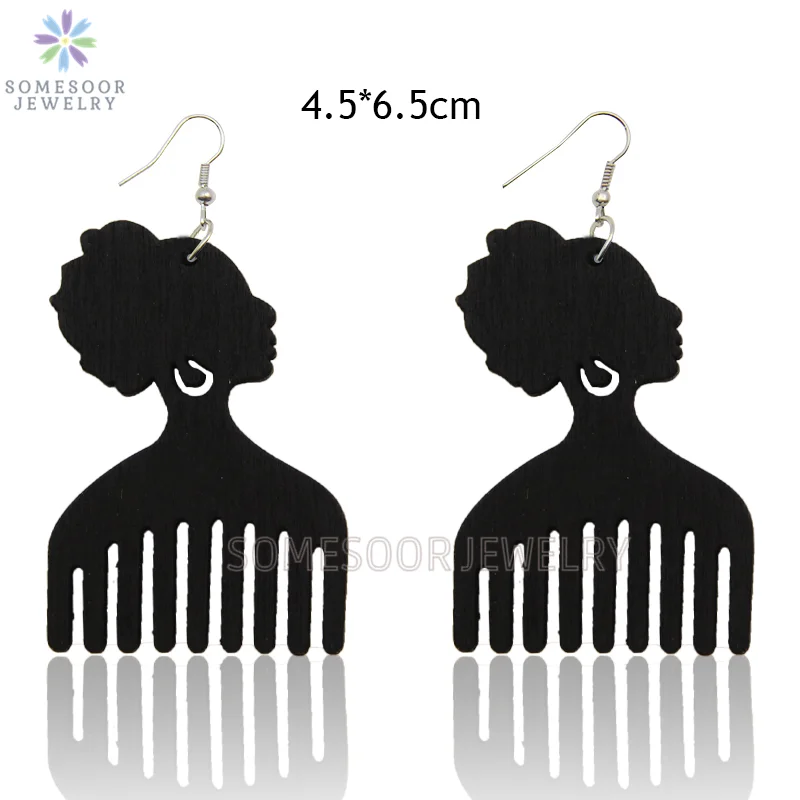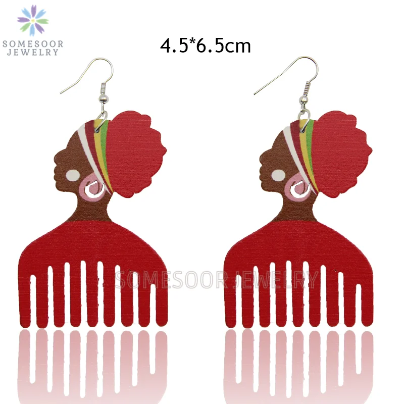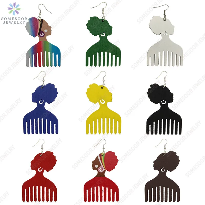 SOMESOOR красочные афро гребень деревянные висячие серьги с Африкан...