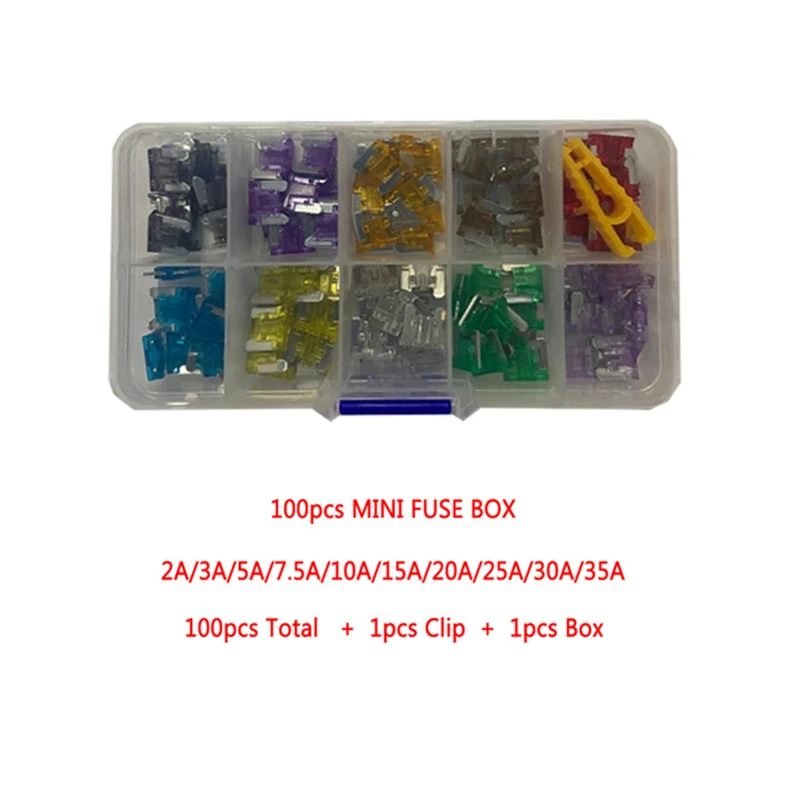 Автомобильный мини-предохранитель, 100 шт., 50 шт., 2 А, 3 А, 5 А, 7,5 А, 10 А, 15 А, 20 А, 25 А, 30 А, 35 А, с коробкой, в ассортименте набор предохранителей для грузовиков