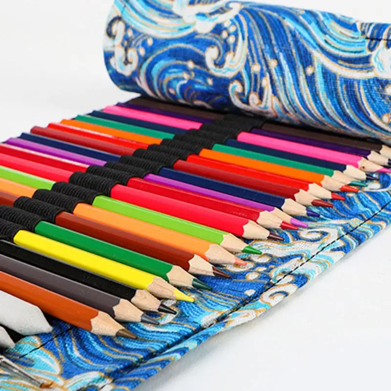1224364872 отверстия холст школьный пенал Чехол Roll Up Карандаш Че...