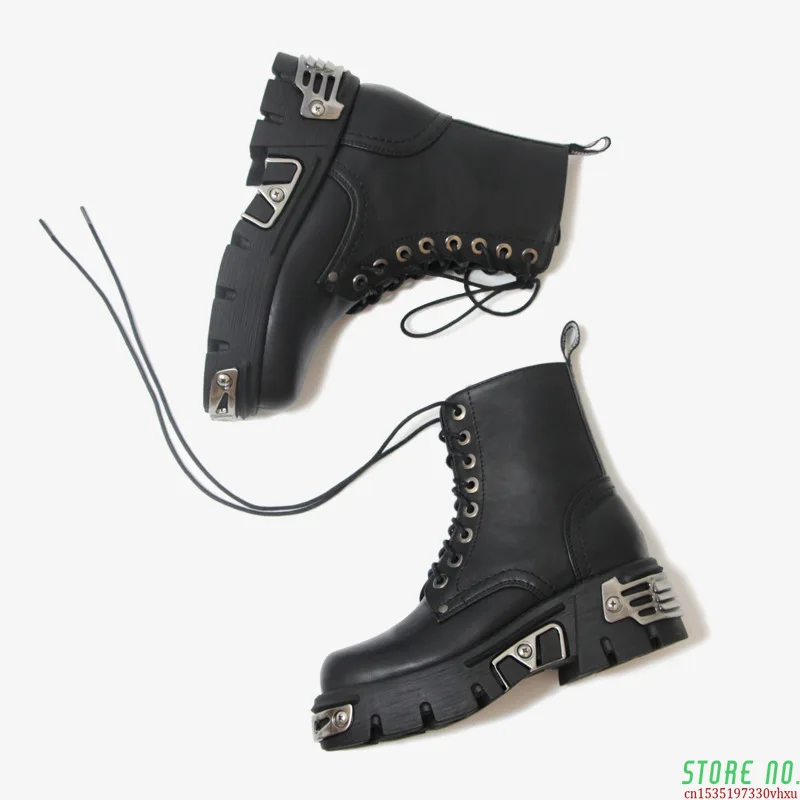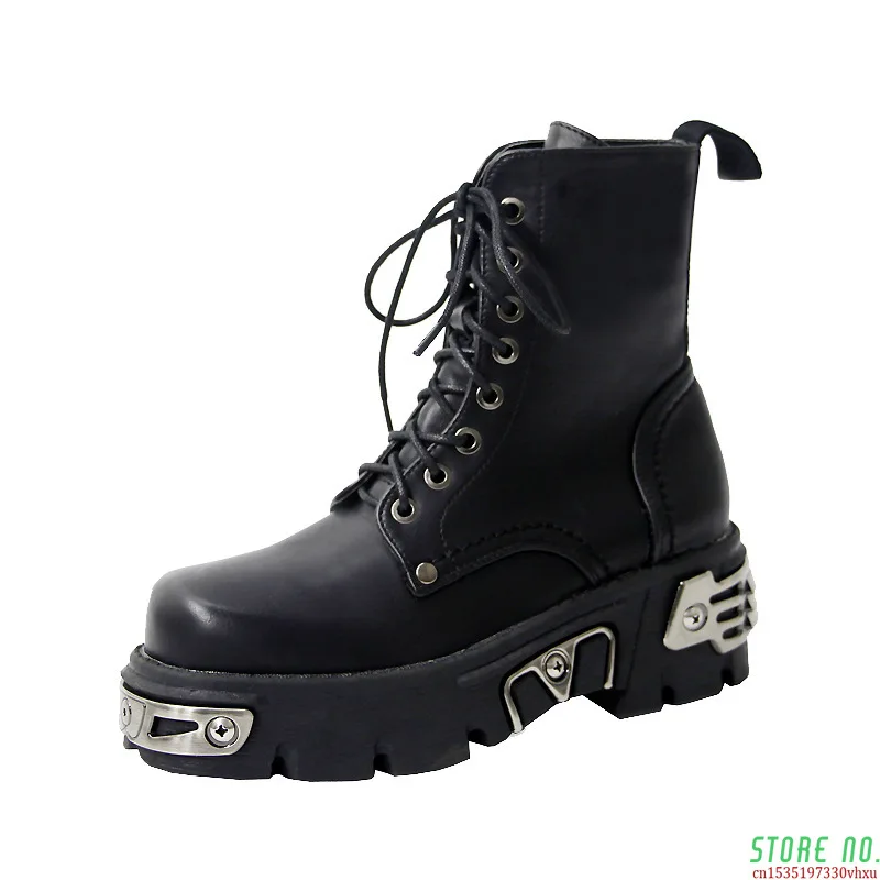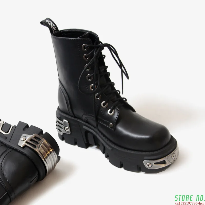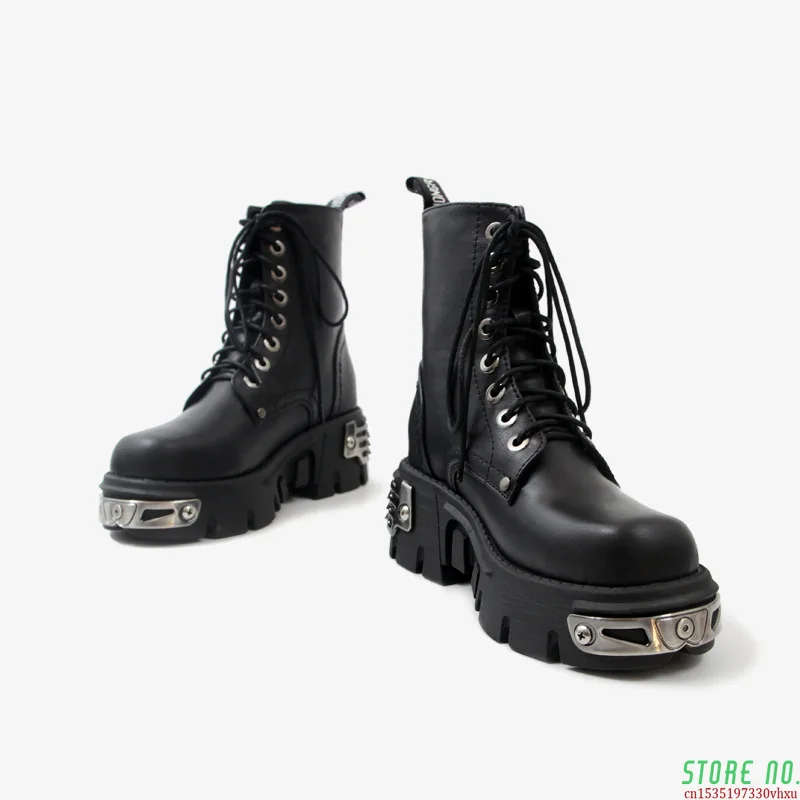 Женские ботильоны на платформе в стиле панк, женские мотоциклетные ботинки, модная массивная обувь, черные ботинки с металлическим декором, большой размер 41 43 44