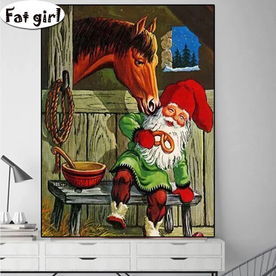 Алмазная 5d картина Санта-Клаус, вышивка сделай сам с изображением животных, лошадей, вышивка крестиком, квадратная Круглая Мозаика, подарок для настенного крепления