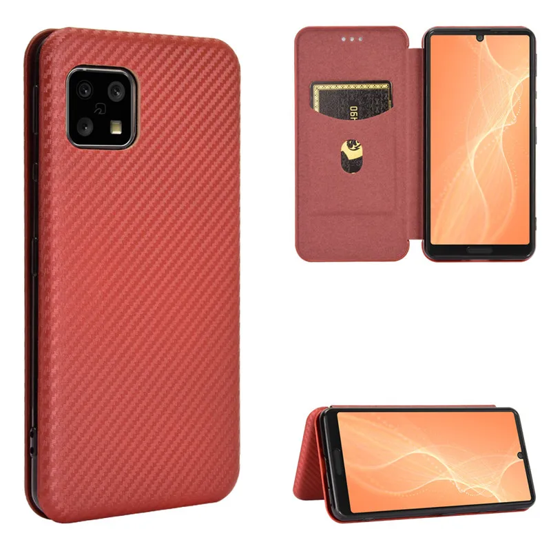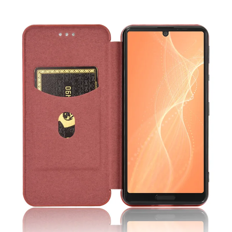 Для Sharp Aquos Sense 5G чехол 5,8 дюйма из углеродного волокна и поликарбоната, жесткий держатель для карт, тонкий кожаный чехол для Sharp Aquos Sense 5G, чехол-кошелек с откидной крышкой