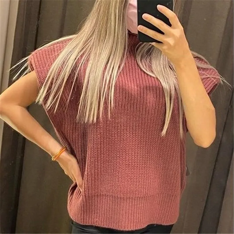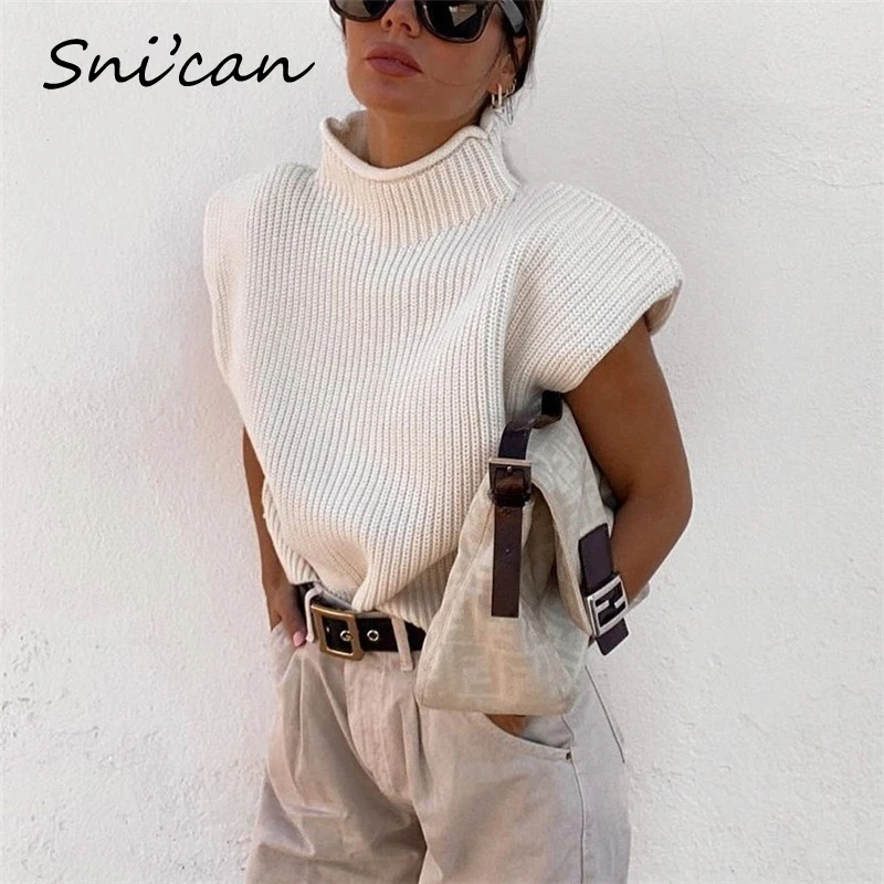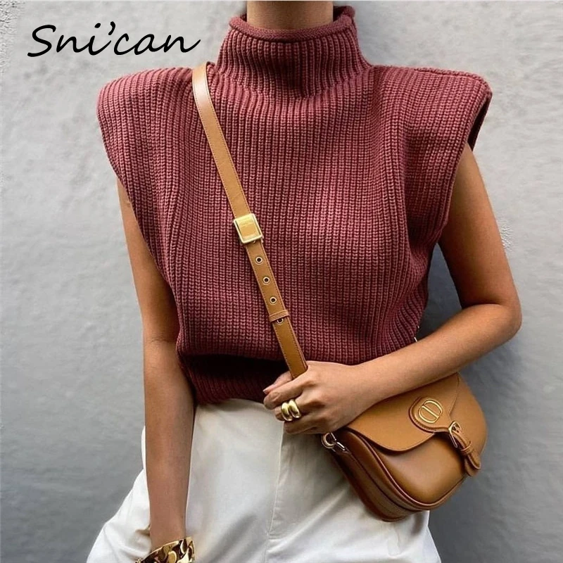 Свитер Snican Женский Повседневный с высоким воротником, жилет без рукавов, винтажный осенний Топ, трикотажный Женский пуловер Za 2020