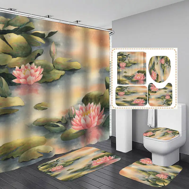 Акварель цветок лотоса полиэстер ткань душ Шторы нескользящий коврик для ванной комнаты крышка для унитаза ковры из мультфильма Холодное сердце дома Ванная комната Декор для ванной комнаты