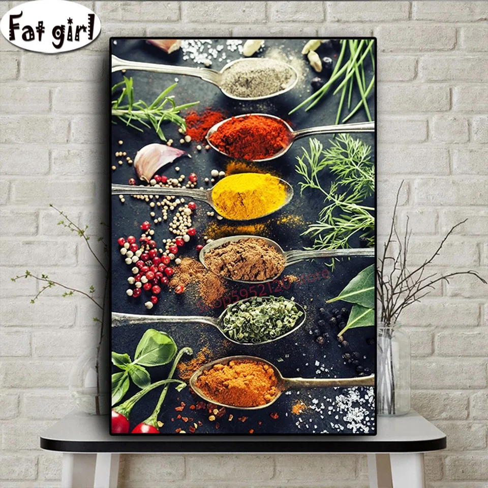 Современная кухня приправы специи алмазная живопись 5D DIY постеры настенные художественные картины Стразы Вышивка Мозаика Декор для ресторана