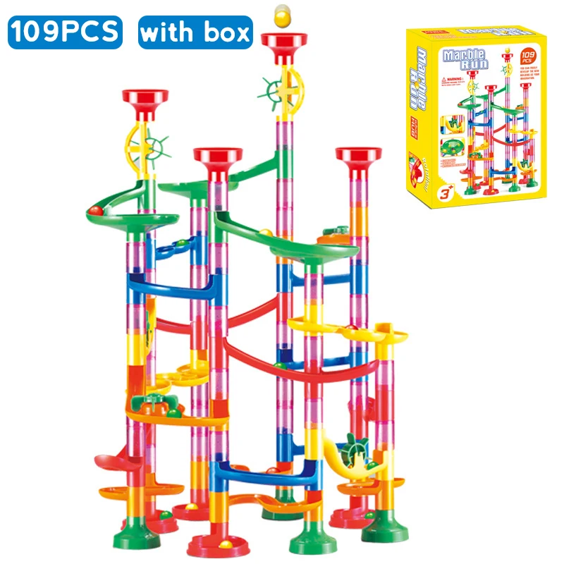 Эта мраморная гоночная игрушка-это взрыв! 105 шт DIY строительные блоки-хорошая развивающая игрушка для вашей семьи. Мраморная гоночная дорожка-это отличный предмет, чтобы научить маленьких детей импульсу и свойствам гравитации через мрамор, идущий на трассе. Вы можете сложить их так, как вам нравится, чтобы ваши дети могли строить блоки по-разному каждый раз с их воображением. Это отличная игра для вашей семьи.