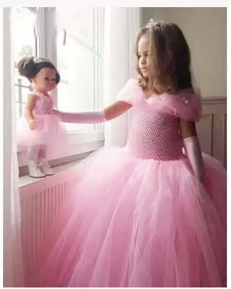 Платья-пачки для девочек, розовые, с бабочками и цветами
