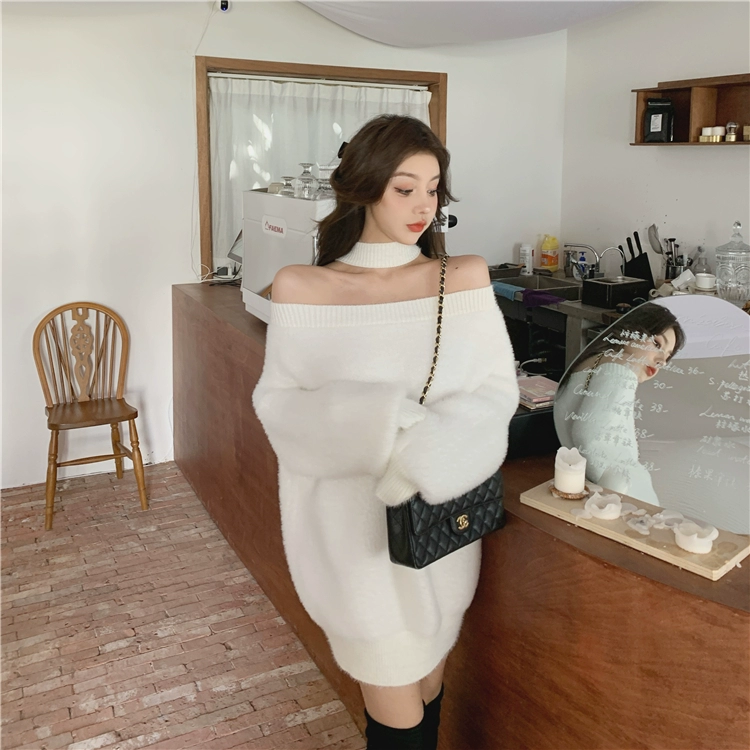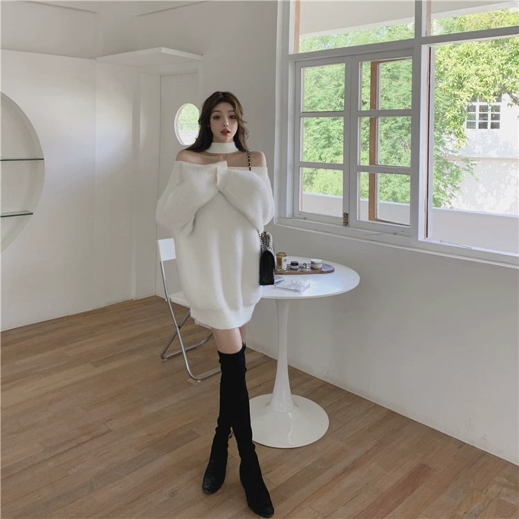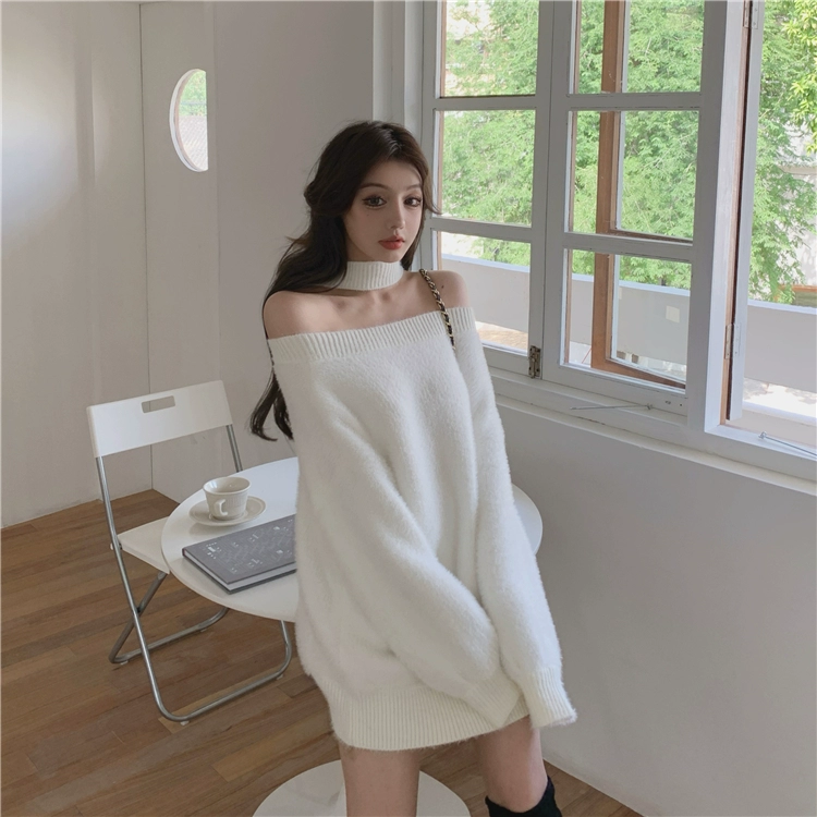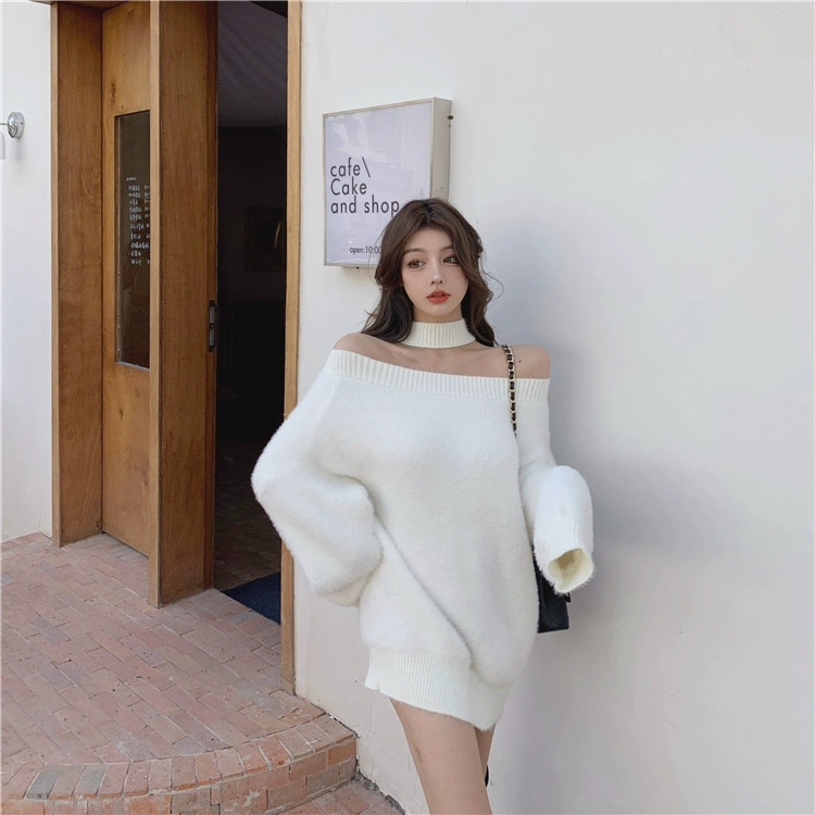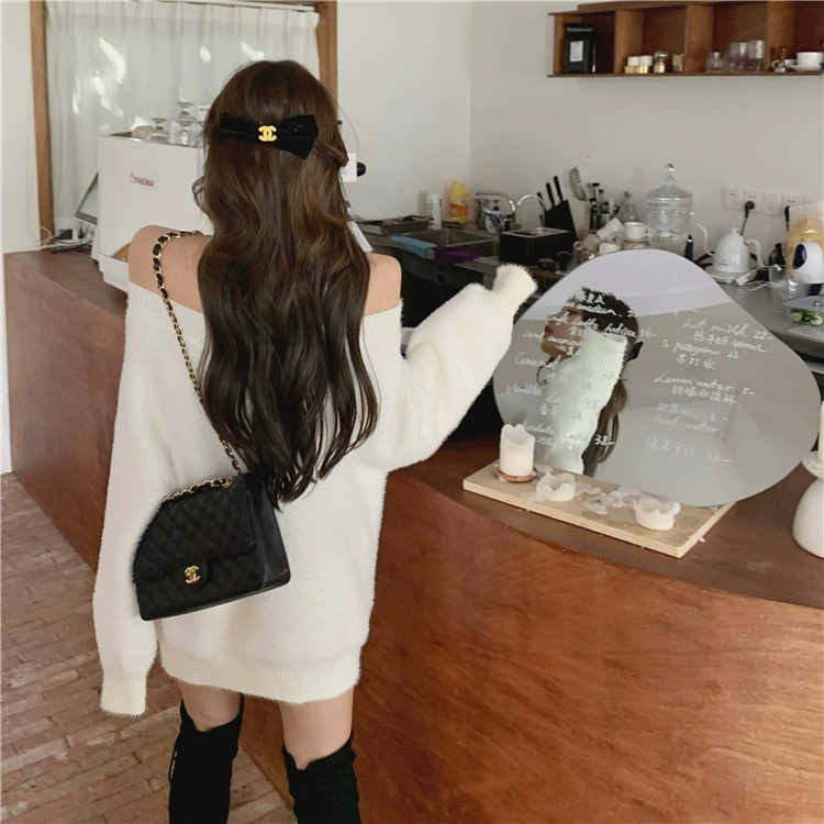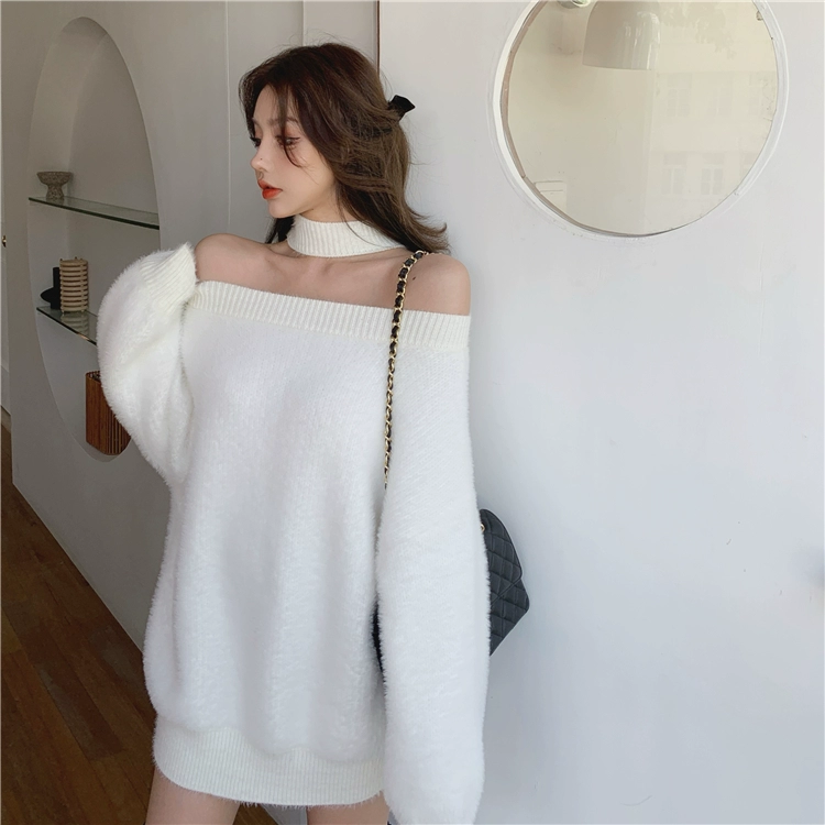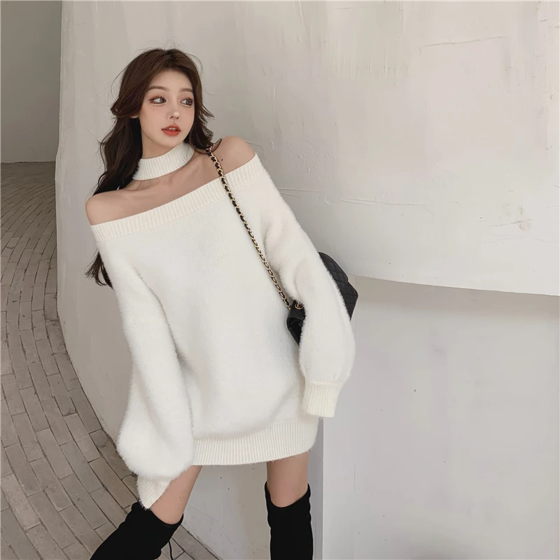 Трикотажный мягкий теплый свитер и пуловеры в Корейском стиле, женские джемперы с открытыми плечами (R99455