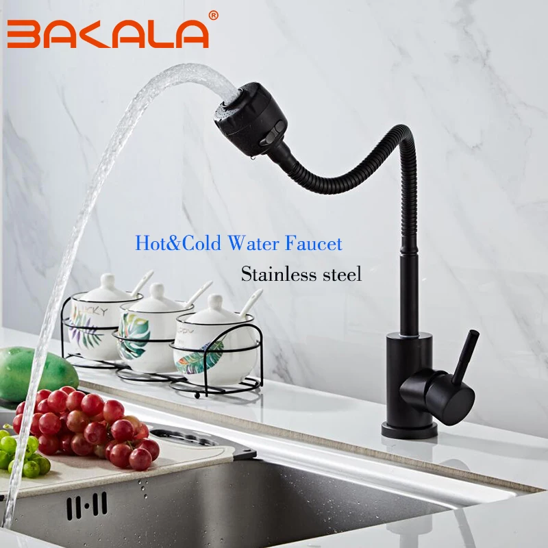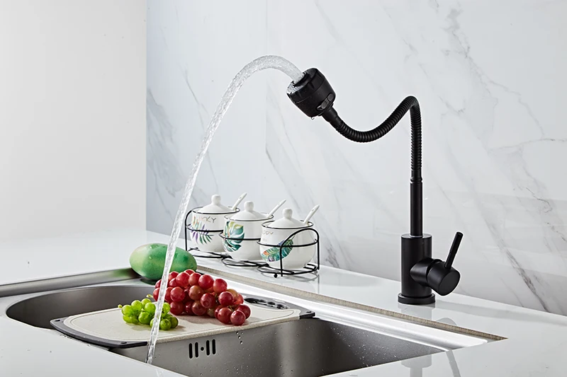1 комплект, черный кухонный кран, смеситель для холодной и горячей кухни, водопроводный кран с одним отверстием, нержавеющая сталь, torneira cozinha