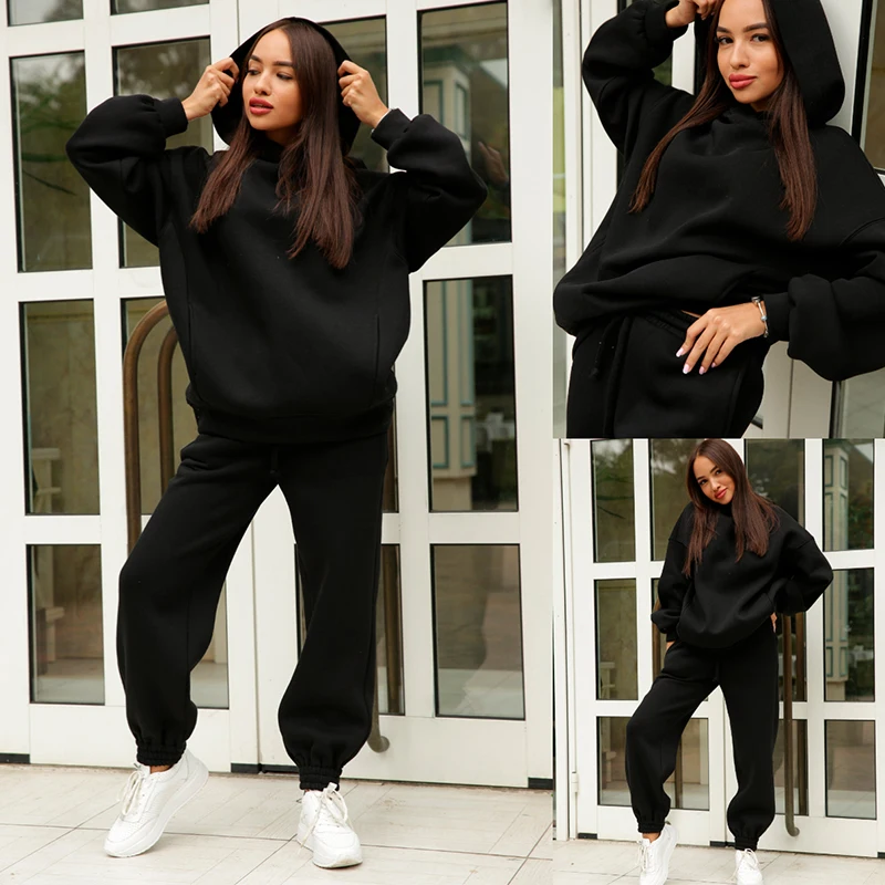 Свитшот женский осенне-зимний, однотонный, с капюшоном