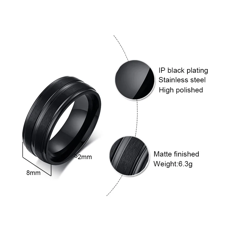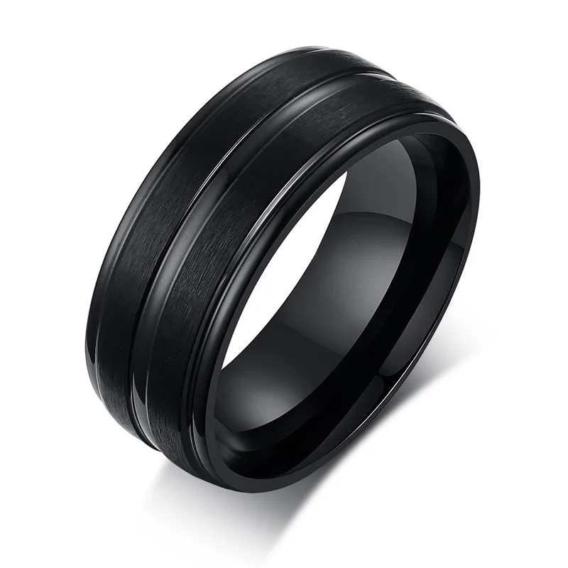 Мужское матовое кольцо из нержавеющей стали, черное обручальное кол...
