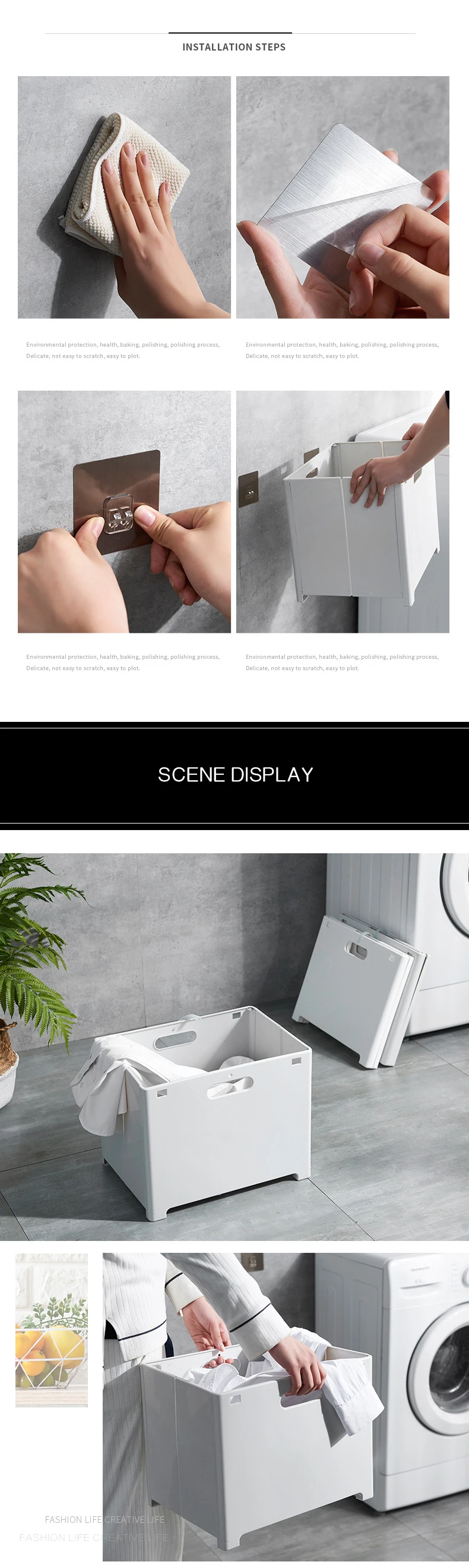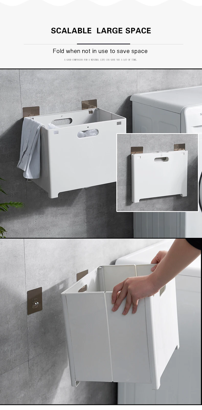 Корзина можно повесить на стену кухни и ванной комнаты, рациональное использование настенного пространства, прощание с грязью.