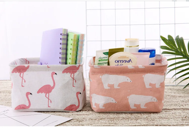Настольная корзина для хранения, водонепроницаемая коробка для хранения мелочей из хлопка и льна с милым принтом, шкаф корзина для хранения нижнего белья