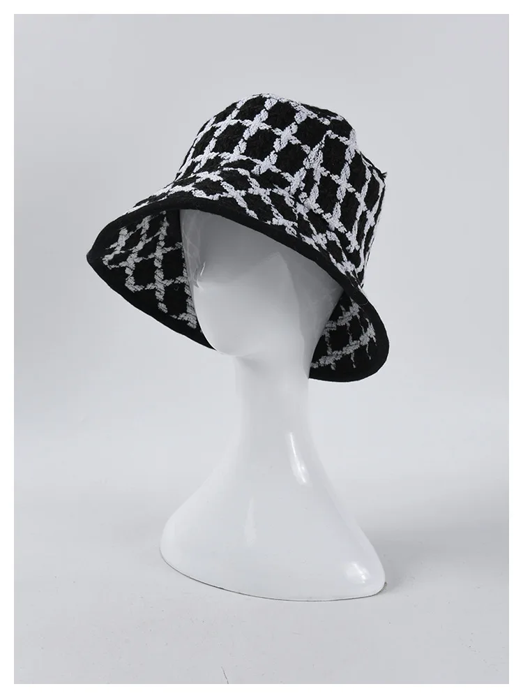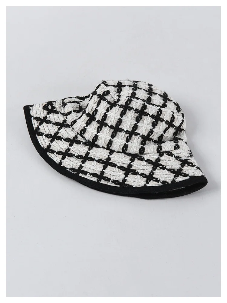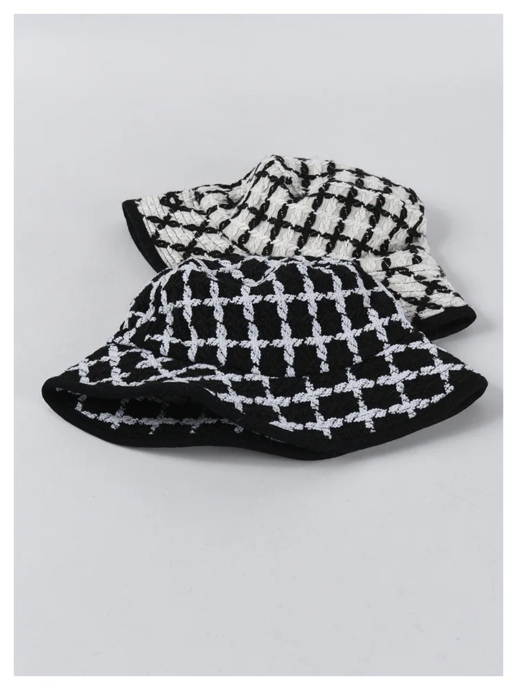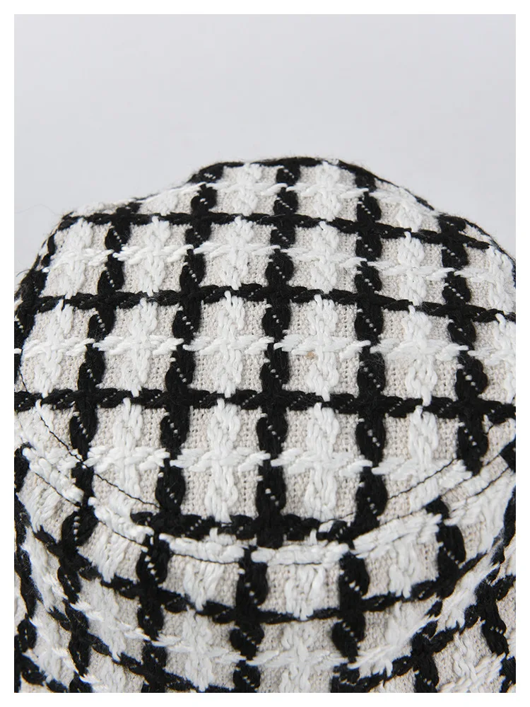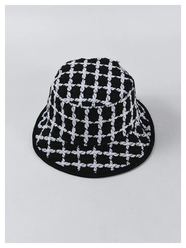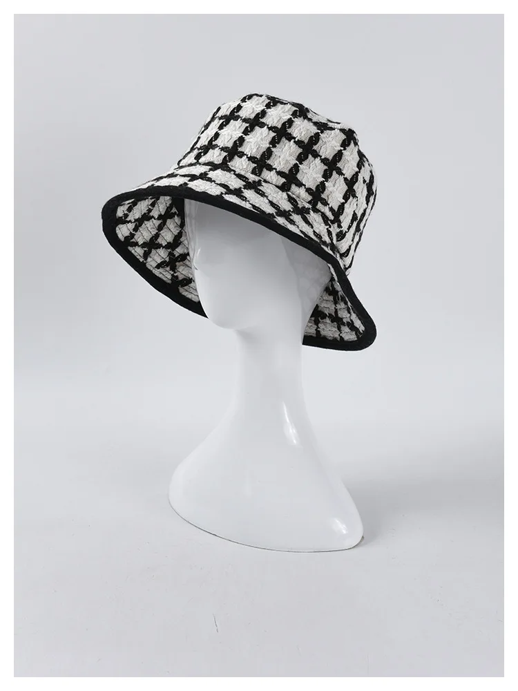 Панама женская твидовая в клетку, с широкими полями, Осень-зима