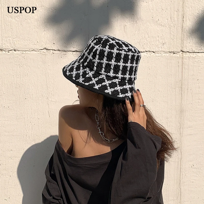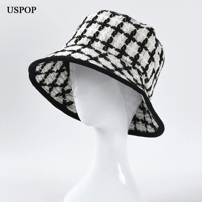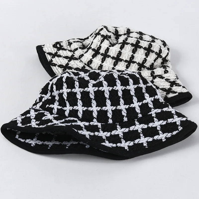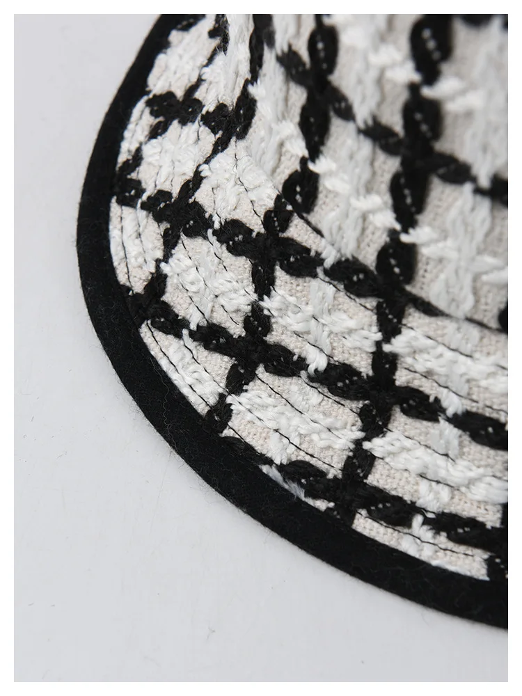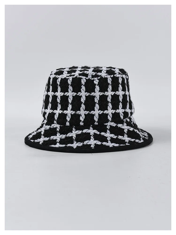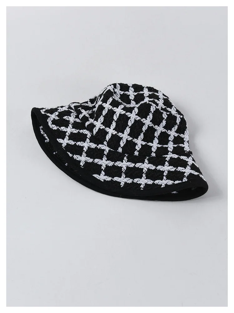 Панама женская твидовая в клетку, с широкими полями, Осень-зима