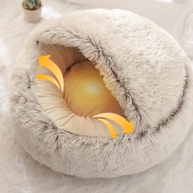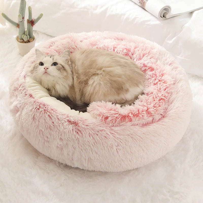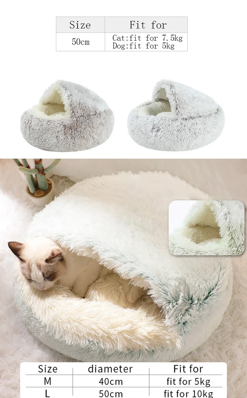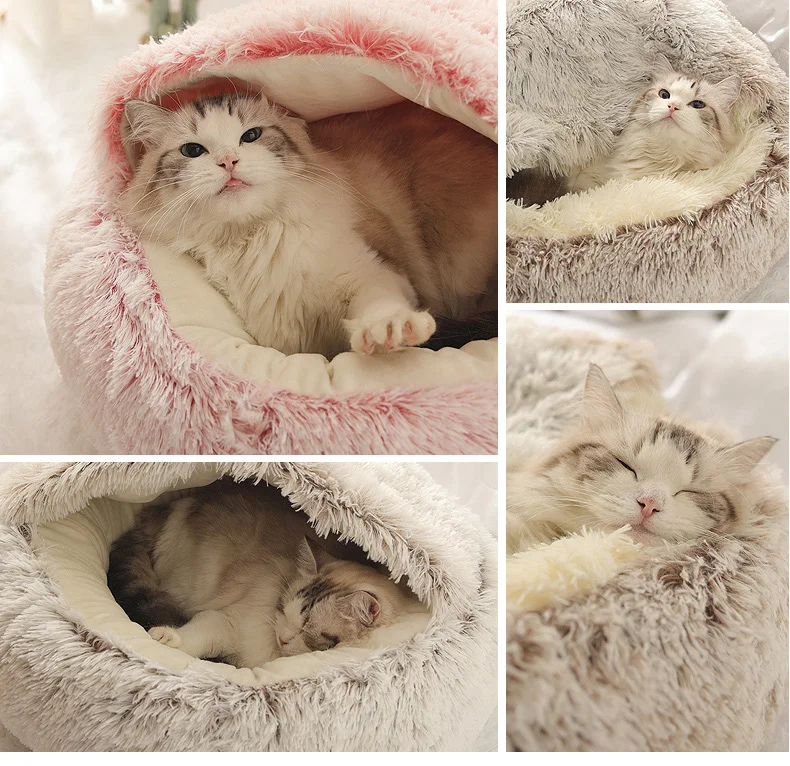 Популярная плюшевая круглая кровать для кошек, теплый домик для кошек, мягкая длинная плюшевая кровать для домашних питомцев, кровать для маленьких собак, гнездо для кошек 2 в 1, подушка для кошек, диван для сна