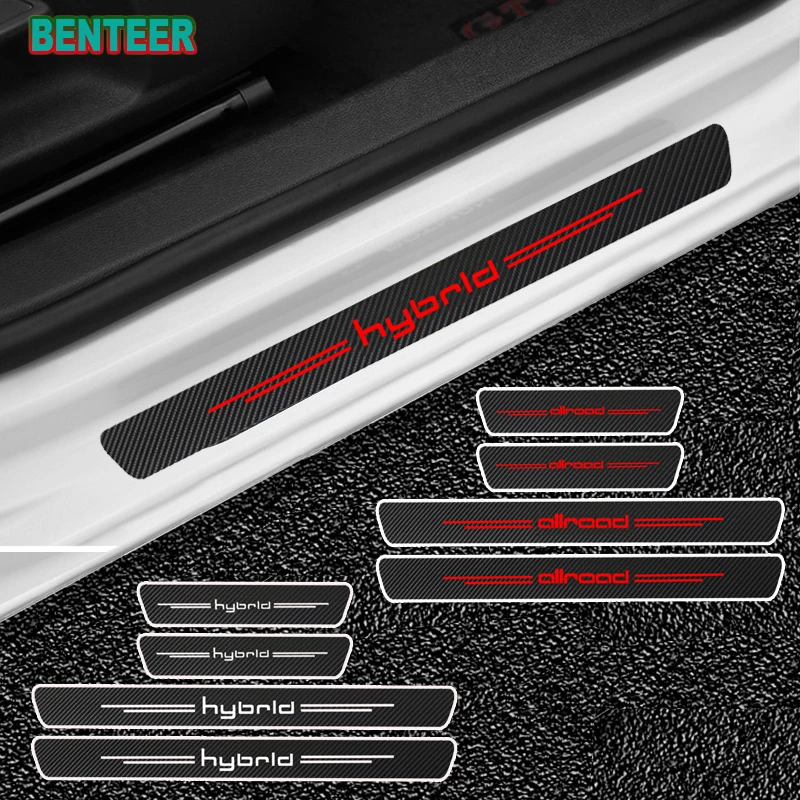 4pcs Carbon Fiber HYBRLD ALLROAD Car Door Protection Sticker For Audi A3 A4 A5 A6 A7 A8 A1 Q3 Q5 Q7 TT B6 B7 C6 4F